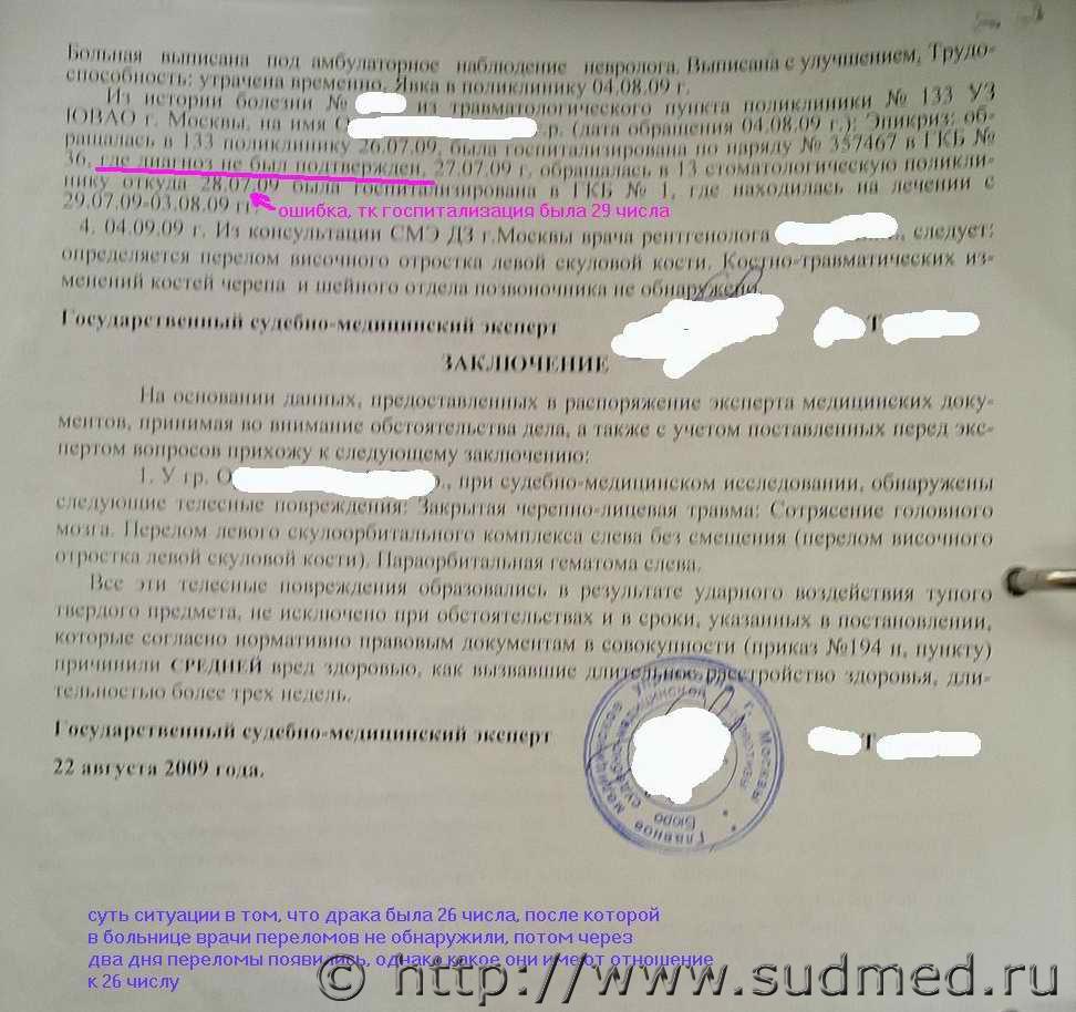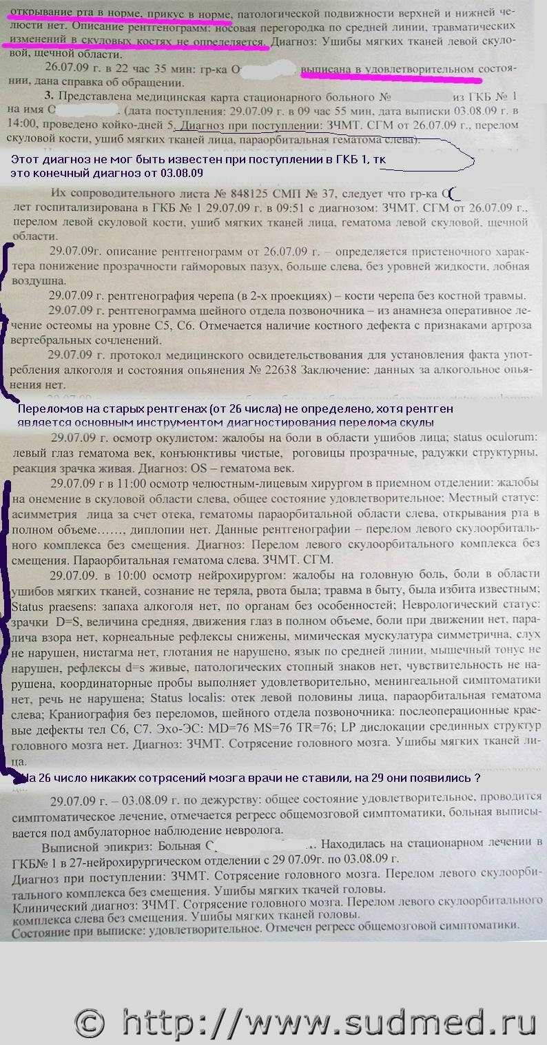 Правильность Выводов вызывает сомнение. 1. Совершенно не ясно, на что ориентировались врачи, при продлевании больничного листа. 2. Согласно совместному документу МИнздрава и Фонда соцстраха "ОРИЕНТИРОВОЧНЫЕ СРОКИ ВРЕМЕННОЙ НЕТРУДОСПОСОБНОСТИ ПРИ ТРАВМАХ, ОТРАВЛЕНИЯХ И ДРУГИХ ПОСЛЕДСТВИЯХ ВОЗДЕЙСТВИЯ ВНЕШНИХ ПРИЧИН (класс XIX по МКБ-10)" от 2000г., длительность временной нетрудоспособности при переломе скуловой кости без смещения - 15-20 дней, со смещением - 20-30 дней. В данном случае - без смещения и срок временной нетрудоспособности завышен без какких-либо причин.