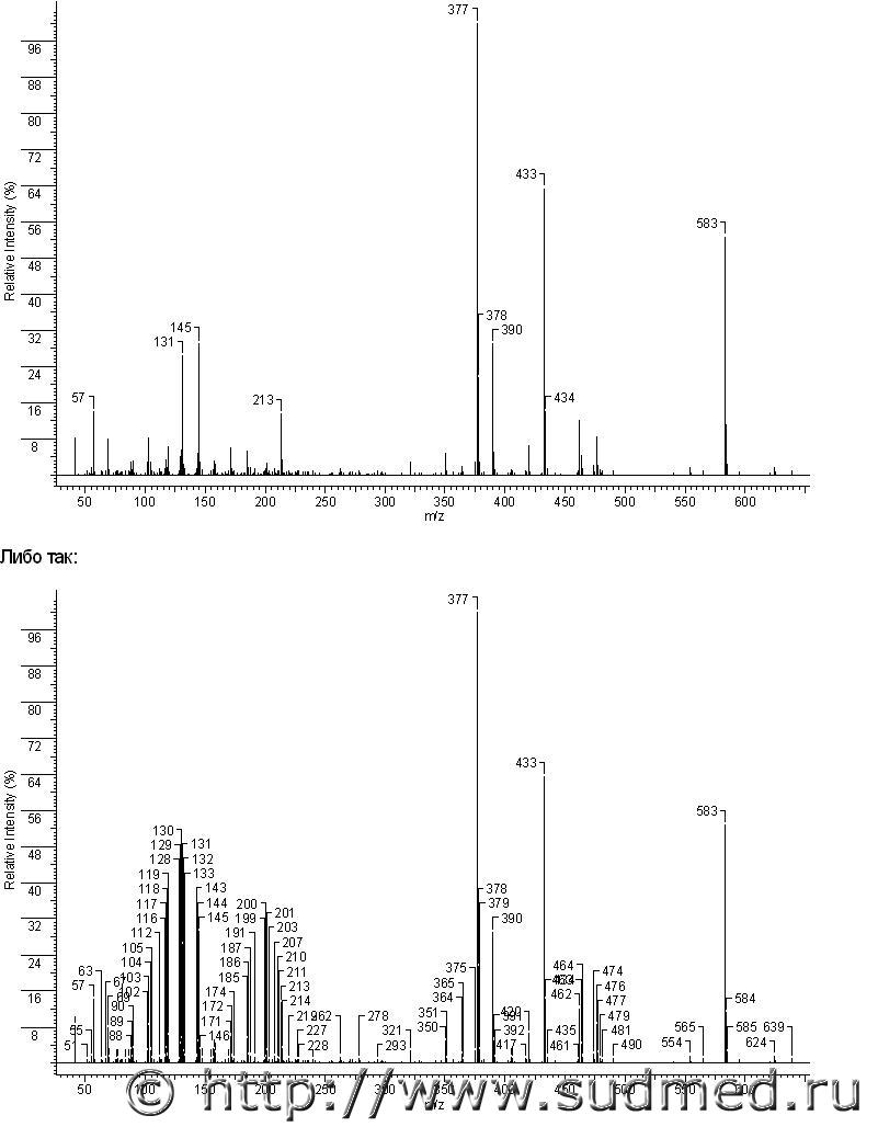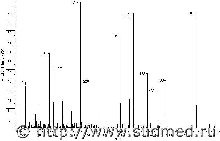 Поискав на хроматограммах Anthony_Hunter ожидаемый С4СOOH-метаболит ... я нашёл 2 спектра: ... "ожидаемый" ион 583 также присутствует в обоих спектрах. Первый: -F, CH2OH, пентафторпропионил. Второй: -F, COOH, пентафторпропиловый эфир. З.Ы.: поправился, m/z 227- бис-кислота, 213 - 5-гидрокси-. |