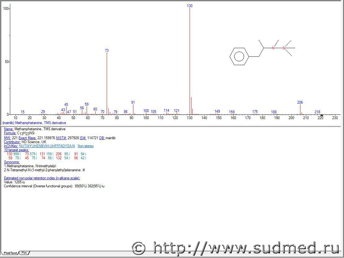 сделали экстракцию щелочную и тмс дериватизацию, я правильно понимаю, что на 9,1 минуте это не метамфитамин тмс , насколько я помню должны быть 166 и 236 и М 251, но вот молкулярного 251 как раз и нет