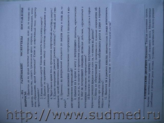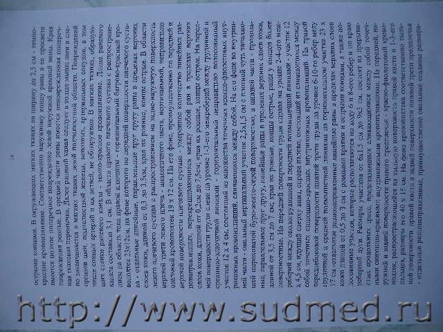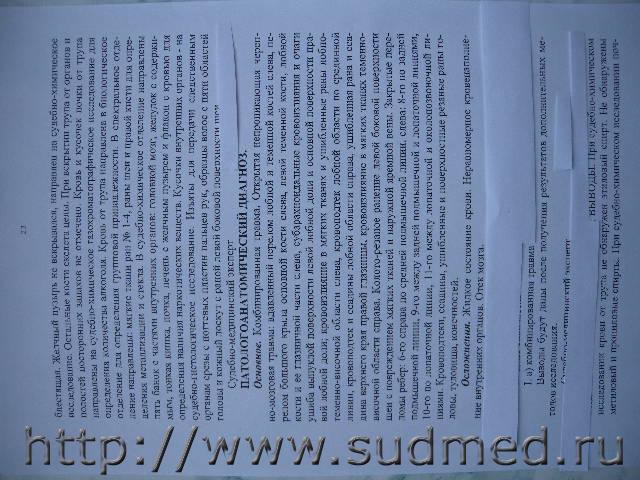 Вскрытие проводил судебный эксперт-паталогоанатом, который составил выложенное мной заключение, там приложены фото трупа и отдельно головы, вот по этим фотографиям теперь эксперты