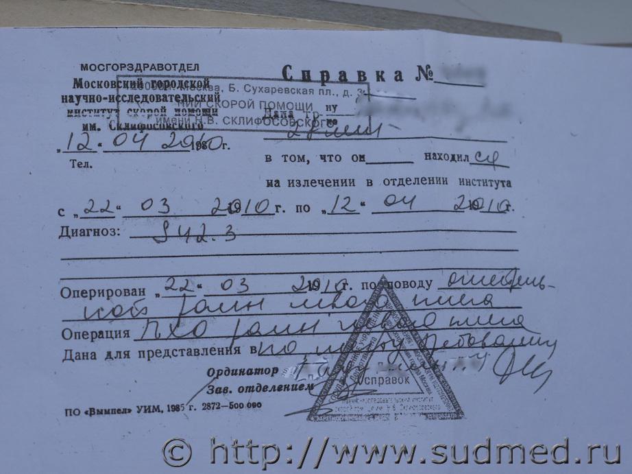 Степень тяжести, Огнестрельное ранение в/3 левой плечевой кости |