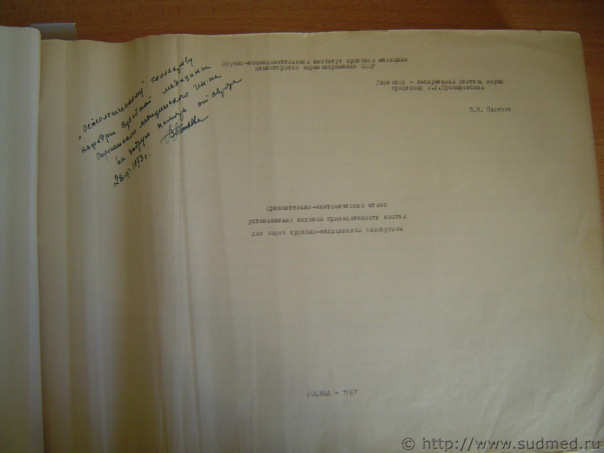 В приличном обществе, к которому мы с Вами принадлежим (как, впрочем, и «заинтересованные лица»), принято отвечать на поставленные вопросы и ни в коем случае не рассказывать то, о чем Вас не спрашивали. Если «заинтересованные лица» спросили: «…может ли представленная на экспертизу кость принадлежать корове?», у Вас есть два варианта ответа: 1. Либо, со ссылкой на Веру Ивановну, ответить положительно (если это так); 2. Либо, и это, на мой взгляд, правильнее, послать «заинтересованных лиц» к… ветеринарам. Но, как правило, в Постановлении вопрос иной: «…может ли представленная на экспертизу кость принадлежать человеку?». Тогда, мне кажется, нужно действовать по этапам «…производства таких экспертиз». При всех обстоятельствах, Рабочая группа проекта Osteology, очень благодарна Вам за размещенный screen shot, точно указывающий местоположения третьего экземпляра рукописи В.И. Пашковой. Их всего было шесть; один утрачен безвозвратно. Кстати, с мая 2018 года БУЗ ВО «ВОБ СМЭ» владеет ПО Osteology, содержащем электронное издание Атласа Пашковой, и это обстоятельство открывает дополнительные (к пункту 3) возможности для эксперта: 1. Можно сфотографировать предоставленный на исследование объект (кость); 2. В качестве сравнительного материала следует приложить изображение из Атласа Пашковой. Конечно, представленный на экспертизу объект должен быть сфотографирован с том же ракурсе, в котором он представлен в Атласе (например, со стороны вентральной поверхности) и с масштабной линейкой в кадре. Как «выдернуть» изображение из Атласа изложено в Информационно-справочной системе Osteology. По поводу спектрального анализа и других инструментальных возможностей. Хорошо, когда такие возможности есть; очень хорошо, когда есть специалисты, способные их реализовать на практике; идеально, когда есть внятные Методические рекомендации, поясняющие КАК интерпретировать результаты спектрального анализа, выполненного опытными спектрометристами в условиях высоко оснащенной Лаборатории вещественных доказательств применительно к задаче установления видовой принадлежности костных останков. Длина последнего предложения пропорциональна сложности задачи. Если Вам известны Методические рекомендации такого рода, соответствующие возможностям эксперта из Воронежа, Нарьян-Мара, Симферополя, Иваново, Тулы, Уфы и еще из 160 с небольшим Областных Бюро СМЭ одновременно, сделайте одолжение, сбросьте библиографическую ссылку. Гарантирую: через месяц, такой программный модуль будет включен в пакет Osteology. С уважением, ws_K |