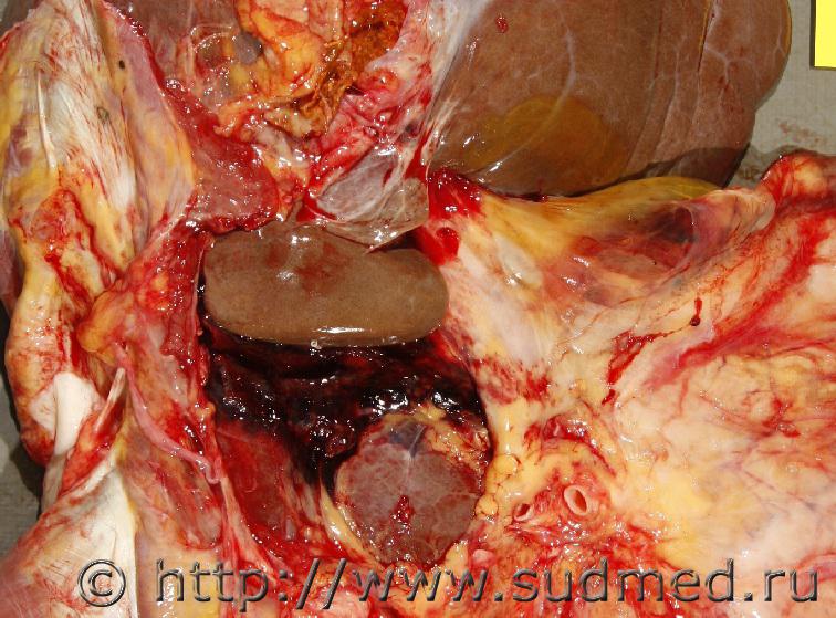Пересматриваю дома стекла с одного случая: кровотечение при разрыве варикозной стенки селезеночной вены, гемоперитонеум 2500 мл, лапаротомию сделать не успели. Смерть в результате геморрагического шока. В одном срезе из места кровотечения - текло в сальниковую сумку под lobus caudatus печени из-под панкреаса (макрофото)- нашел такую странную структуру (микрофото). Паразит? Ботаника? Инородное тело? Фотографировал "объективом в окуляр", качество неважное. Что бы ЭТО могло быть? Если можно, прошу консультацию. |