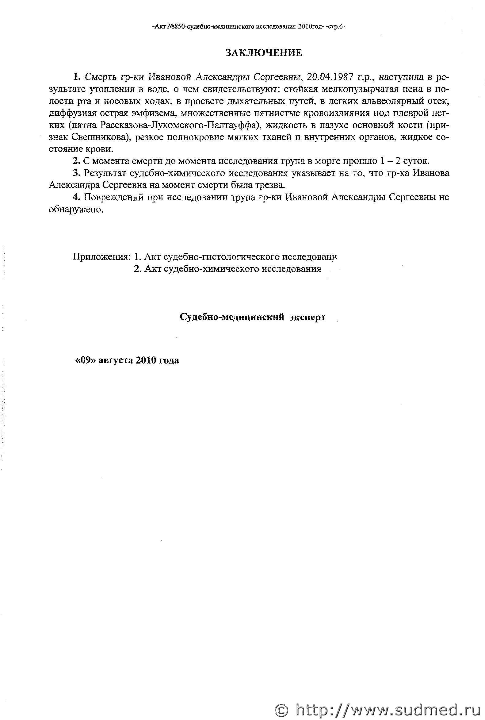 Тереза, примите соболезнования, но на мой взгляд Вы несколько предвзяты к выводам исследования тела дочери судмедэкспертом и к выводам сделанным правоохранительными органами. При детальном рассмотрении Ваших постов и прикреплённых файлов у меня возникло чувство недоумения, которое вызвано тем, что Вы говорите, что дочь утопили в период времени с 03 час. 00 мин. до 04 час. 00 мин. после чего её (я так и не понял дочь или одежду) высушили и около 14 час. 00 мин. сообщили в МЧС. Если сообщение о происшествии поступило в МЧС в 14 час. 00 мин, то почему в экспертизе (л.д.2) указано время обнаружения трупа в 06 час. 00 мин? Дочь в 06 час. 00 мин. обнаружили прохожие что-ли, а в 14 час. 00 мин. её обнаружил кто-то ещё? Далее, зачем Вам экспертиза одежды на предмет пребывания одежды в озере если Вы утверждаете, что дочь утопили в одежде? Вы сомневаетесь, что её утопили в одежде или сомневаетесь, что её утопили в озере? Если под "просушкой" Вы имеете ввиду одежду, то априори признаёте, что в момент утопления одежда была на дочери и тогда теряется весь смысл Ваших претензий к неизвестным лицам "просушившим"... одежду (?). И в конце концов причём здесь одежда - может быть Вы всё-таки поясните нам свою версию происшествия? Вы хотите сказать, что дочь утопили в одежде в одном месте (допустим, в ванне) после чего раздели, просушили (зачем-то?) одежду и через несколько дней бросили дочь в озеро? Так что-ли? Далее, если в деле есть как Вы указываете "подозреваемый", то уголовное дело всё-таки возбуждено и никак не может быть просто так вот "закрыто", то почему бы Вам не выложить постановление о возбуждении уголовного дела - там-то должен быть указана хотя бы минимум обстоятельств происшествия? Постановление о возбуждении дела Вы вправе получить у следователя у которого дело находится в производстве.