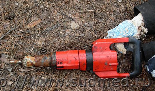СМП продолжает работать. Предлагаю вниманию свежий случай. Труп в лесу, почти полностью скелетирован, пальцы правой кисти обхватывают рукоятку строительно-монтажного пистолета. В качестве снаряда использовался саморез, который был обнаружен в чешуе височной кости, острым концом наружу.
