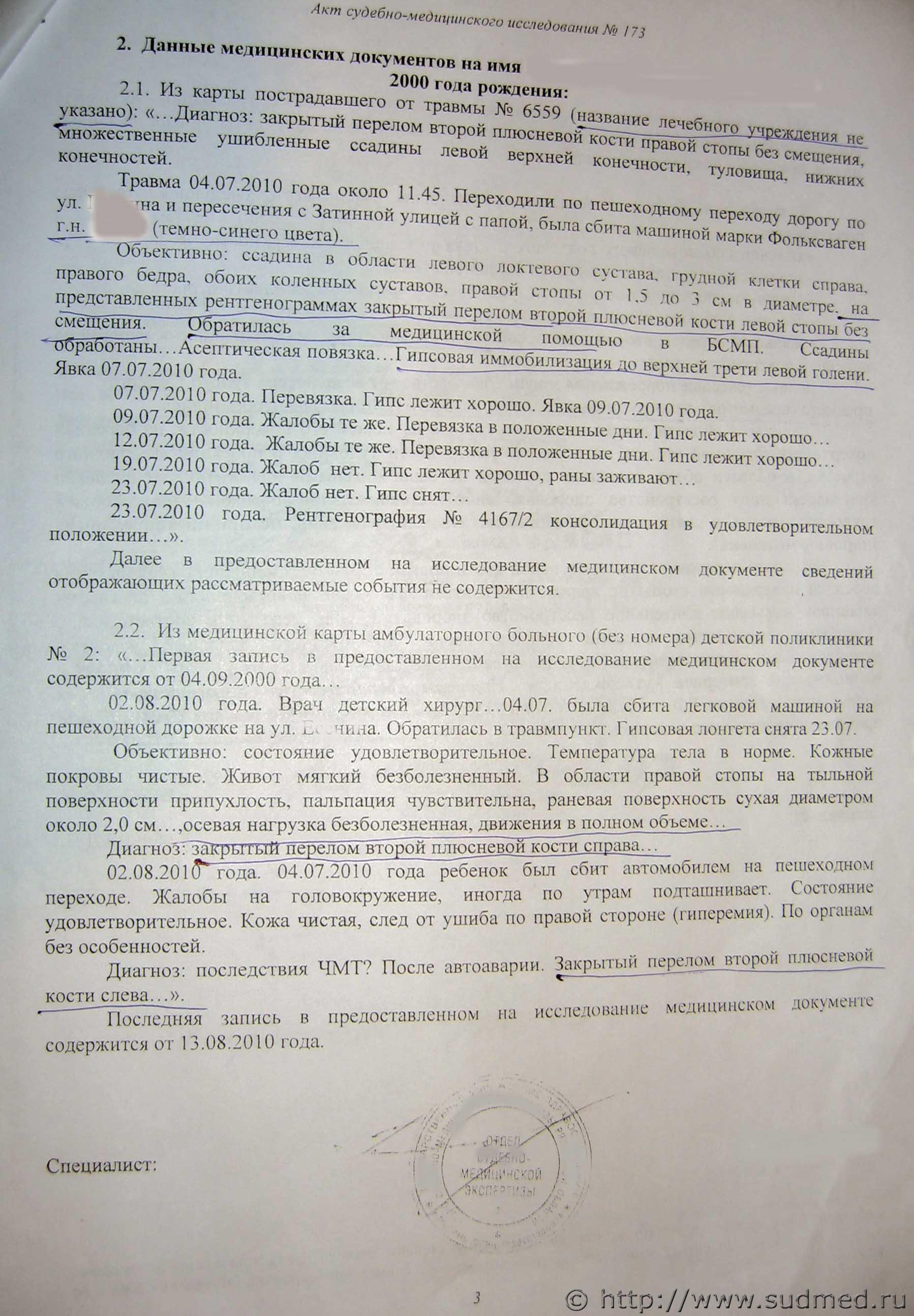 В юле 2010 г. произошло ДТП, зацепил зеркалом по касательной девочку 10 лет. НЕбольшие ссадины и гематома на верхней части стопы. Экспертиза проведена по документам. Снимки первоначальные отсутствуют. Эксперт не даёт ответ о давности. Гипсовая лангета наложена 04.07.2010 снята 23.07.2010 снимок сделан 23.07.2010 консолидация в норме. В карте пострадавшей написано на представленных ренгенограммах закрытый перелом второй плюсневой кости [b]левой стопы без смещения а в заключении правой. Определён средней тяжести вред здоровью. ПРавильно ли определён вред здоровью.