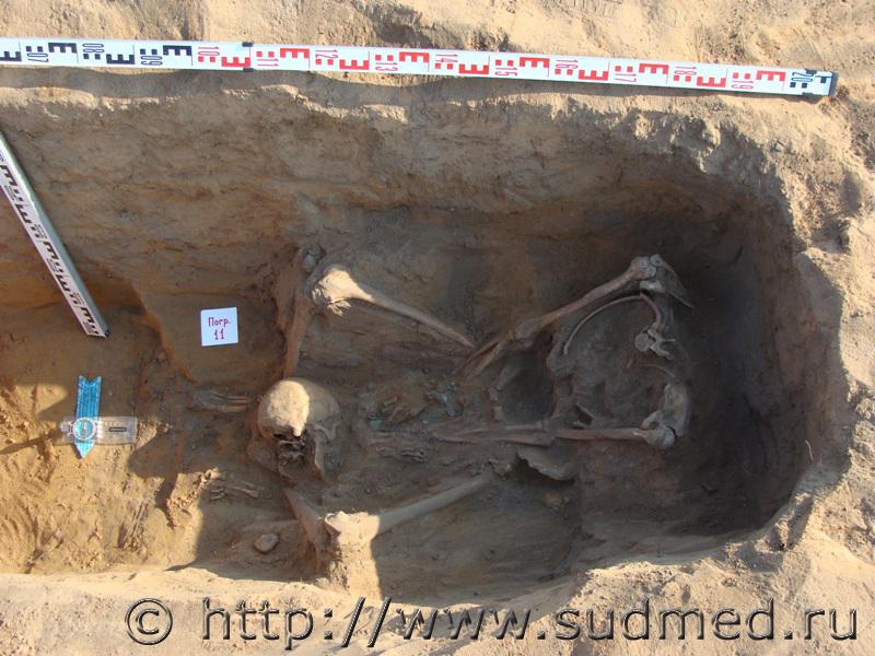 Случайное перемещение частей скелета исключается характером почвы, послойным исследованием захоронения археологами (есть фото), наличием 1, 2-го шейных позвонков с плоскостью повреждения на последнем у основания черепа. Жду ответов по вопросу: чем вызван такой способ захоронения? От юмора прошу воздержаться.