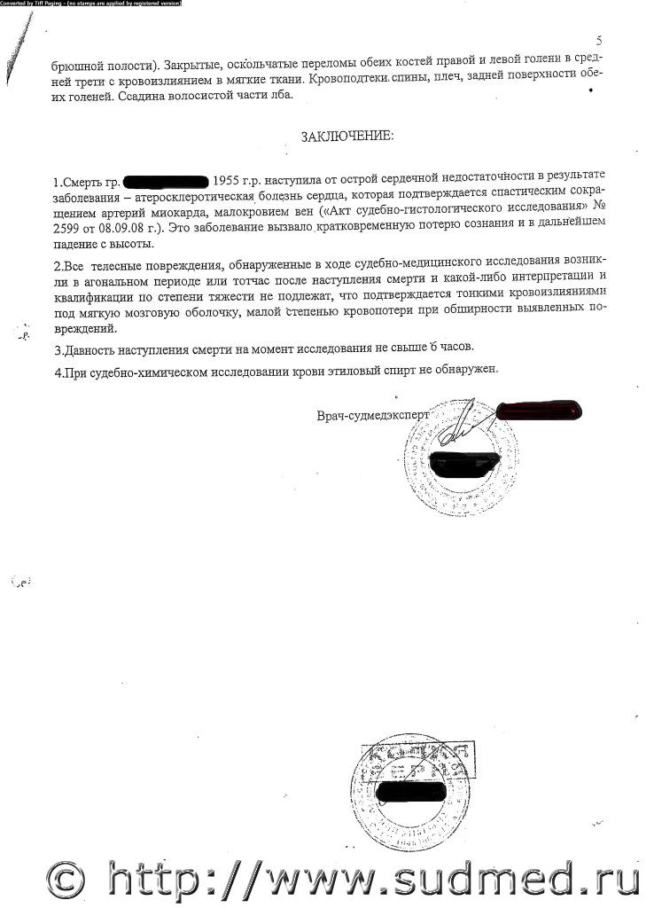 Если вдруг у кого то из экспертов будет свое мнение пишите пожалуйста, мне очень нужно для суда, т.к. сейчас судебный процесс основан на акте СМИ согласно которого смерть наступила до падения. Спасибо.