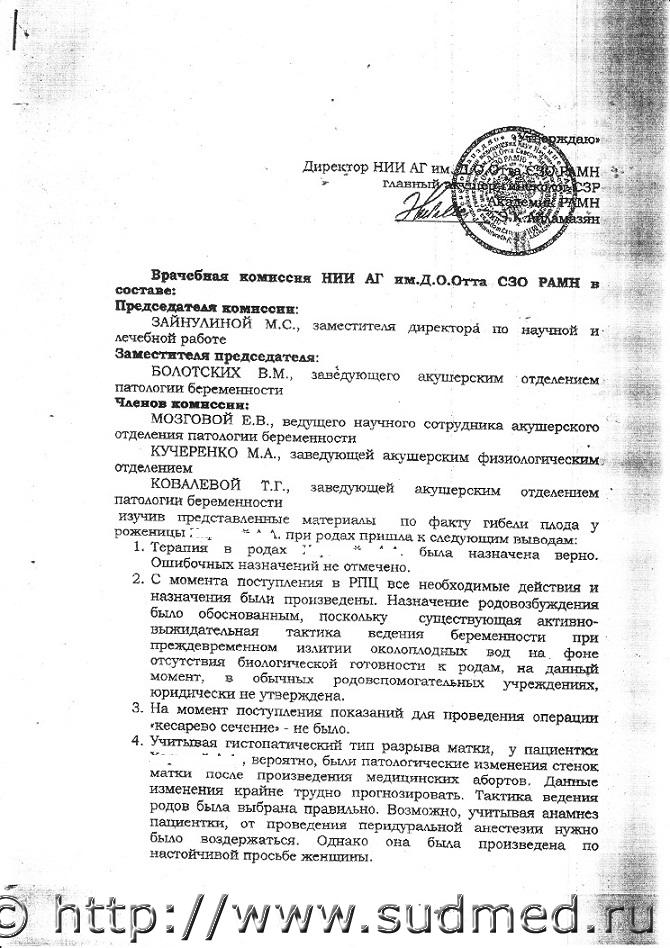 понял... извиняюсь... МРТ сделали: шейка матки присутствует в полном объёме, поэтому утвердился, что выполнялась не экстирпация, а НАМ... вопрос снят... но вопрос по локализации разрыва... где она на этом описании: ранее задавал вопрос: ..."в патологическом направлении, макро.описание: "послеродовая матка... в н/трети - операционная рана, по боковой поверхности матки резкое истончение миометрия вплоть до серозы". это и есть описание разрыва? в операции же описывается разрыв по задней стенке матки?" Вы мне ответили: " Описание - не есть описание разрыва." тогда получается что локализация разрыва вообще не описана?... пожалуйста!... ткните меня, где он???... извиняюсь, но в соседней ветке прочитал: Выкладывайте. Почитаем очередную питерскую безграмотность. Не впервой. не могу сдержаться, и тоже выложу: это мне скан ответа в СК сделали... вчера... когда, на основании чего... даты отсутствуют... два члена комиссии занимают одну должность... фраза: "...существующая активно-выжидательная тактика ведения беременности... на данный момент, в обычных родовспомогательных учреждениях, юридически не утверждена." остальные пункты тоже актуальны, особенно если бы у них лента была... то вероятно... возможно... а СК вчера, на основании этого ответил мне, что ст. 109 УК не может возбудить... |
