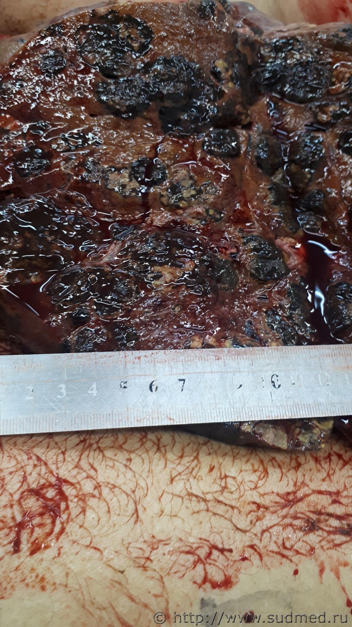 56-летний мужчина. Случай меланомы с множеством метастазов в сердце, печени, легких, селезенке, кишечнике и надпочечниках.