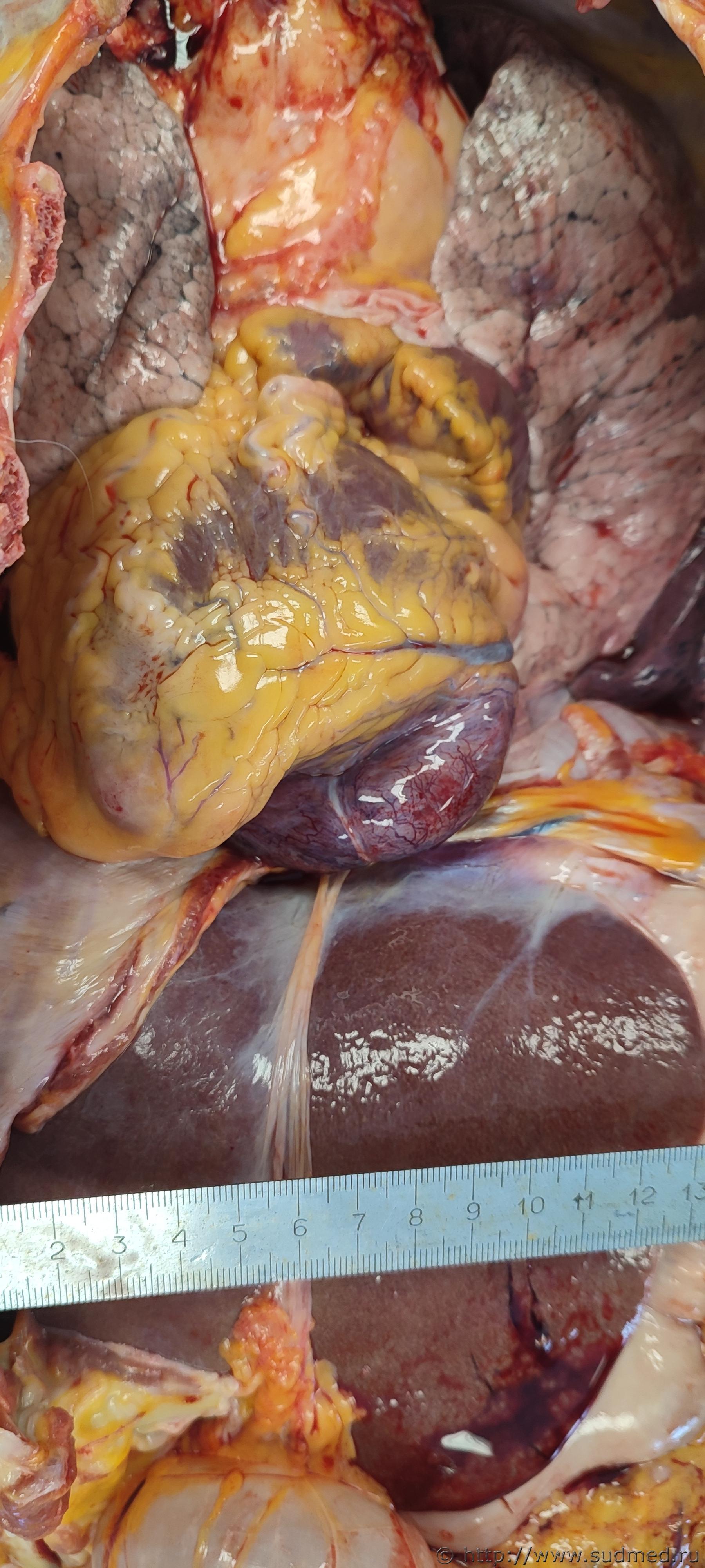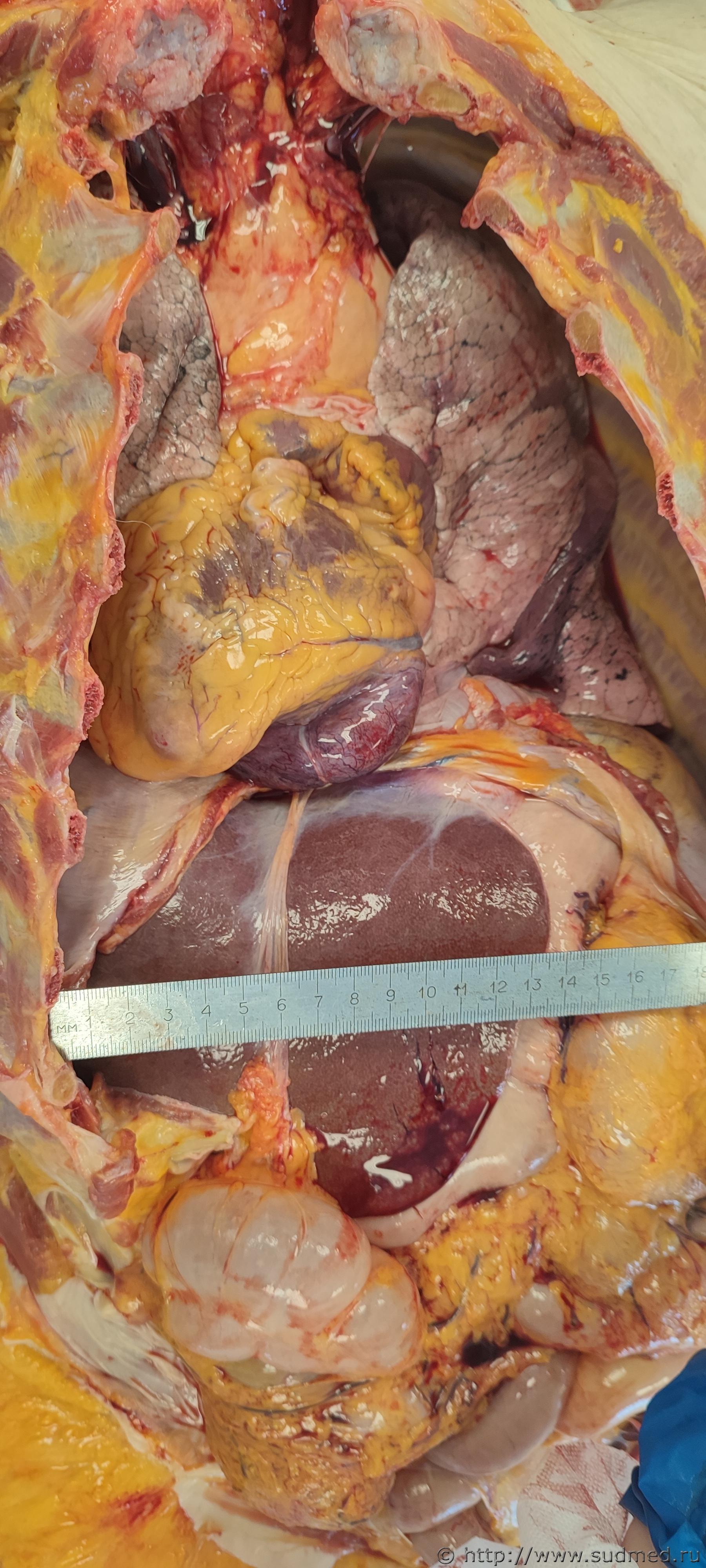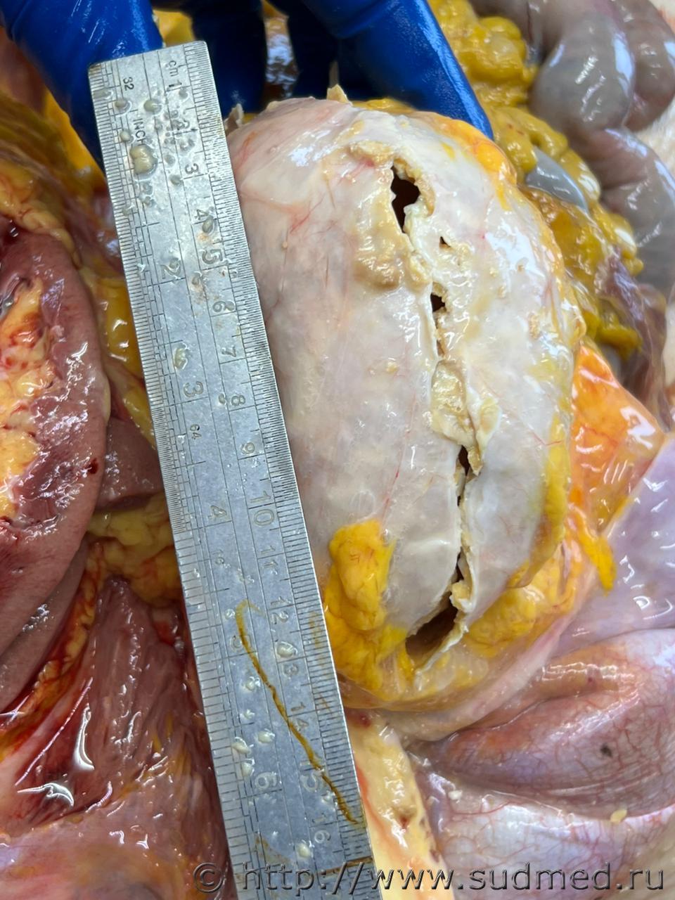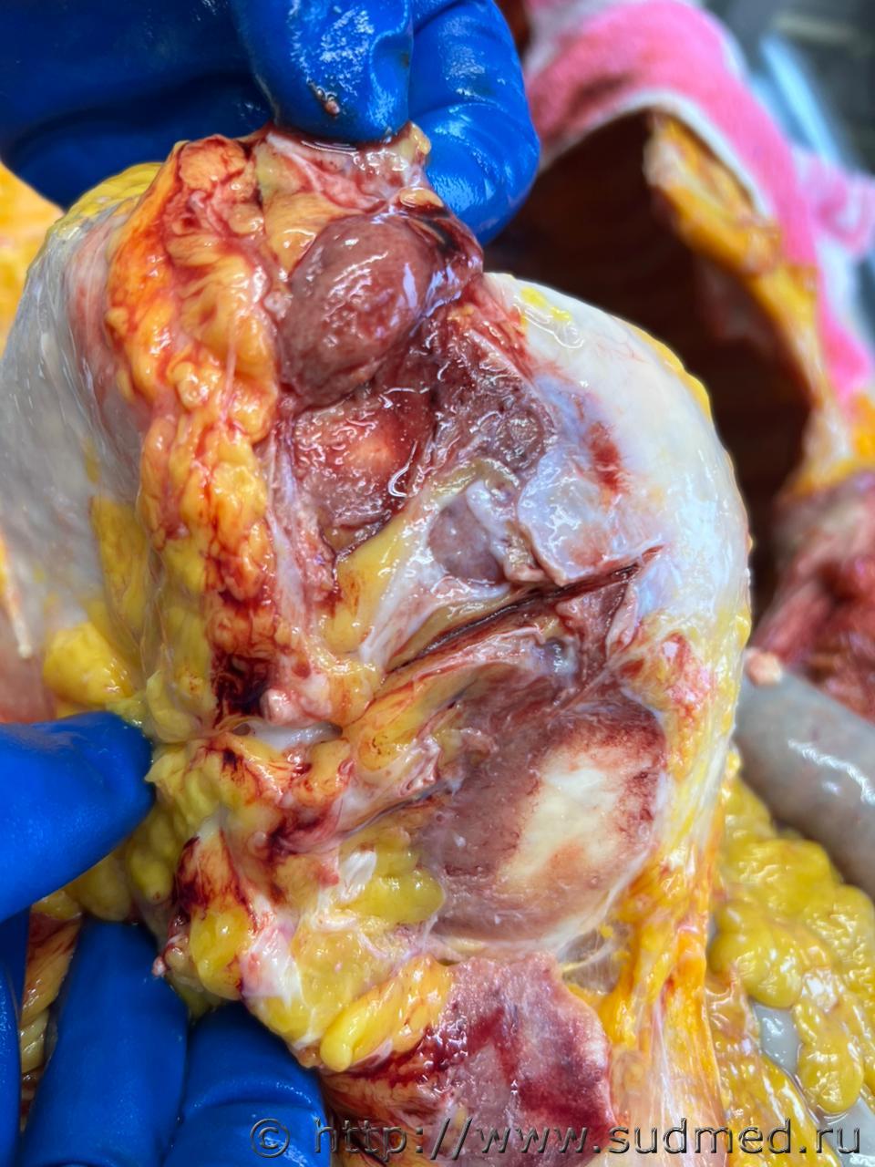 Уважаемые коллеги. Вот такая находка на секции. Женщина 75 лет, рак восходящей ободочной кишки. На фото левая почка. Оболочка этой находки (не знаю даже как ее обозвать в диагнозе) кальцинирована, просвет был заполнен белесовато-серо-желтыми, кашицеобразной и полужидкой консистенции бесструктурными массами. Паренхима почки на нижнем полюсе в виде небольшого фрагмента. Кто встречал такое? Как обозвать данную находку в диагнозе? З.Ы. Простите, что большая часть фото без линейки ((( И снова ошибка при открытии фото… |