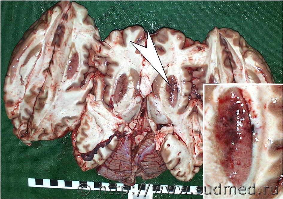 Кровоизлияния в nucl. lentiformis. Летальная интоксикация метанолом.