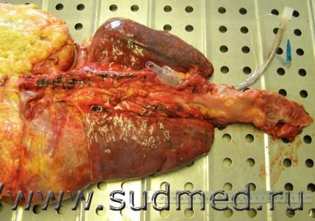 3 дня назад вскрывал (по патане) женщину 1972 года рождения, умерла в реанимации, диагноз вирусная пневмония. Брали на серологию - грипп А (H1N1). Но не это самое интересное вот, что на секции нашел - дренажную трубку уважаемые торакальщики засунули в легкое на 8,5 см. ![]() |