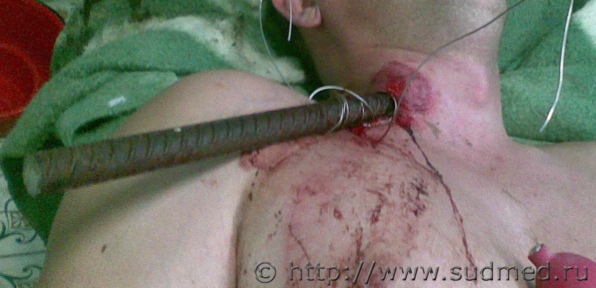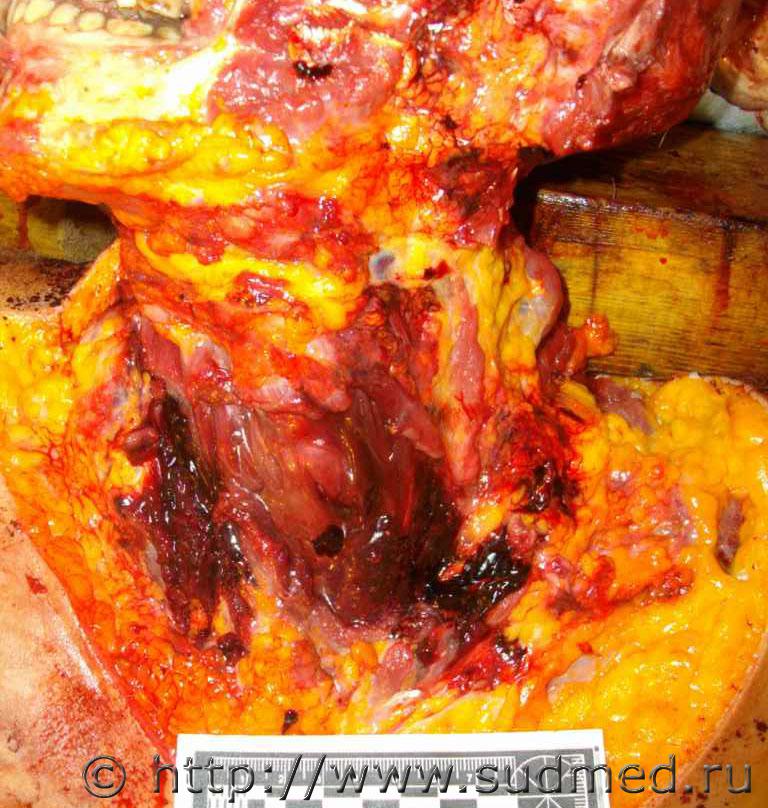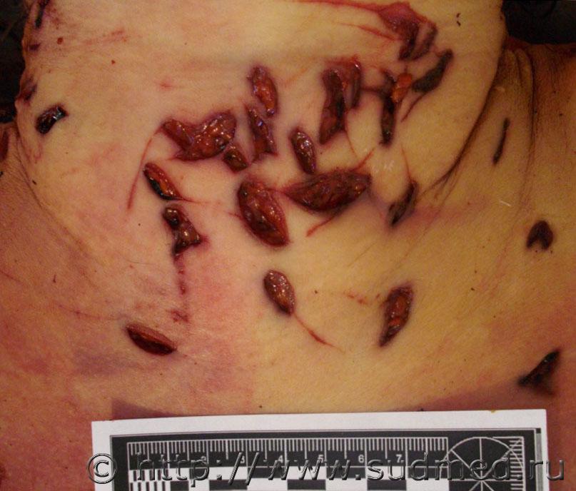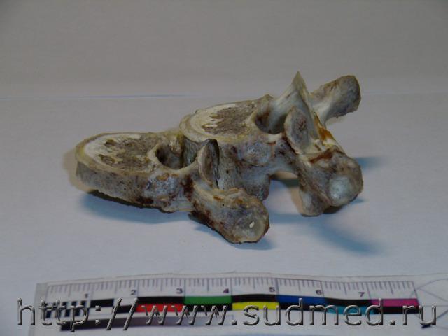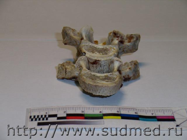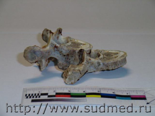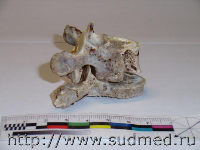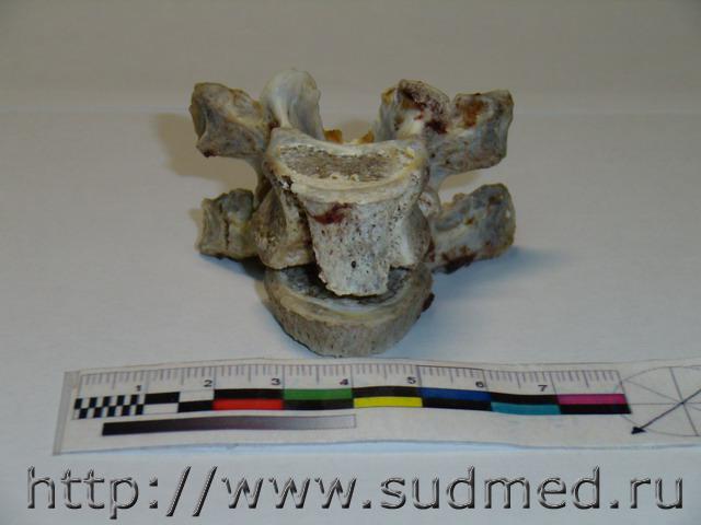 Обстоятельства: женщина, 45 лет, пассажир переднего сидения легкового автомобиля, стоящего на обочине. В автомобиль врезается фургон "Газель". На стационарном лечении более 3-х месяцев, лечение консервативное. С момента травмы и до смерти - нижняя параплегия. На вскрытии: Обнаружены полные поперечные переломы 4,5 правых рёбер по околопозвоночной линии, перелом 3-го правого ребра между лопаточной и околопозвоночной линиями. Края указанных переломов несколько муфтообразно утолщены, неровные, сглаженные, между собой практически не сопоставляются. Пристеночная плевра в проекции переломов не повреждена. При рассечении мягких тканей грудной стенки в области переломов из них выделяется полужидкое гнойное содержимое серо-жёлтого цвета; мышцы грудной стенки здесь тусклые, грязно-коричневого цвета, волокнистая структура строения их практически неразличима. Обнаружена деформация позвоночного столба в виде «ступеньки» на уровне 4-5 грудных позвонков, со смещением верхней части кзади не менее чем на 2 см. Тело 4-го грудного позвонка деформировано, с разрастанием «костной мозоли». Фрагмент грудного отдела позвоночного столба, а также 1-5 правые рёбра выпилены и направлены для детального исследования в отделение медицинской криминалистики. Вещество спинного мозга в грудном отделе белого цвета, дряблое, липнет к поверхности ножа. На уровне 4-го грудного позвонка вещество спинного мозга кашицеобразное, с неопределимой структурой строения. Твёрдая мозговая оболочка на этом уровне несколько утолщена, с необильными наложениями светло-жёлтого цвета... Результаты МКИ: 1. При исследовании 1-5 грудных позвонков из трупа гр-ки ХХХ выявлены старые переломы тела, остистого отростка 4 позвонка и неполный перелом поперечного отростка 5 позвонка. 2. При сопоставлении 4 и 5 грудных позвонков между собой установлено, что при смещении 4 позвонка кзади по отношению к ниже расположенному позвонку, верхние суставные отростки 5 позвонка и переломы на теле 4 позвонка становятся конгруэнтными (сопоставимыми) между собой. Суставные отростки свободно входят в переломы тела позвонка, при этом тело 4 позвонка оказывается смещённым на 25 мм кзади относительно тела 5 позвонка, что примерно соответствует данным судебно-медицинского исследования трупа гр-ки ХХХ. Вышеизложенное даёт основание полагать, что переломы тела 4 грудного позвонка образовались в результате значительного смещения 4 и 5 позвонков относительно друг друга и воздействия верхних суставных отростков 5 позвонка на тело 4 позвонка в преимущественном направлении кверху и кзади. 3. При исследовании 1-5 правых рёбер из трупа гр-ки ХХХ. обнаружены старые переломы 2-4 рёбер на уровне бугорков рёбер, сочленяющихся с рёберными суставными ямками поперечных отростков соответствующих позвонков... ![]() ![]() ![]() ![]() ![]() ![]() |