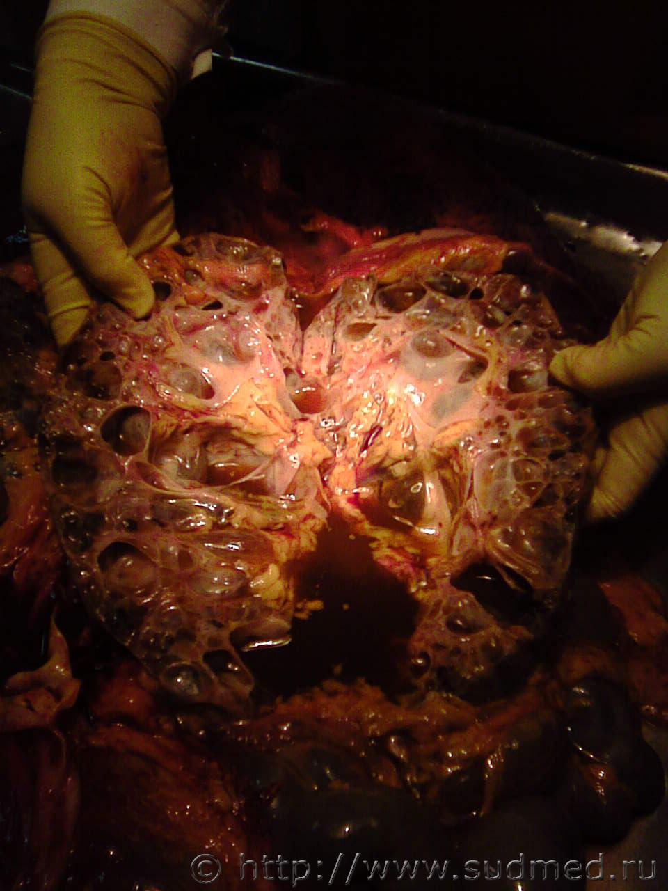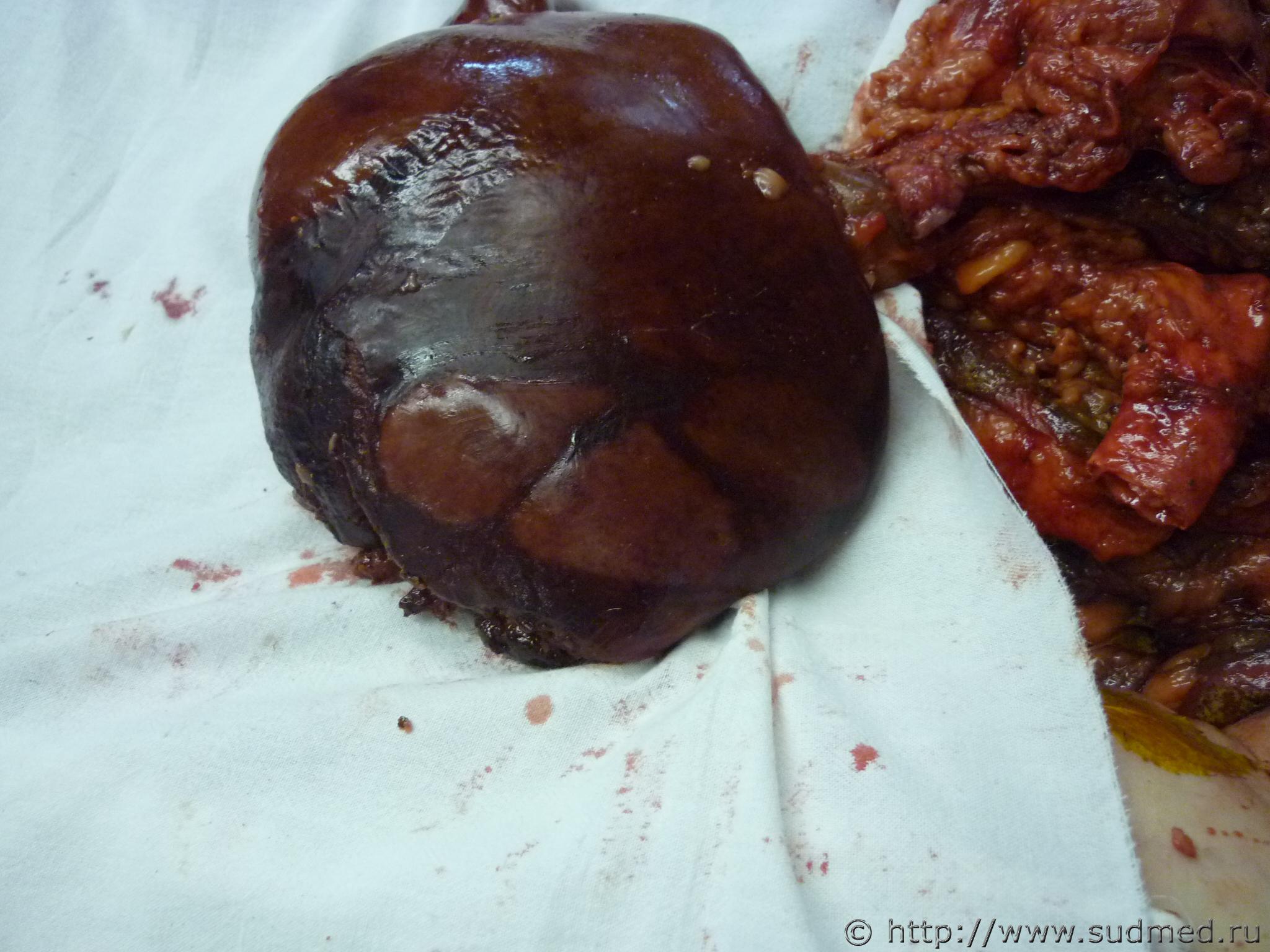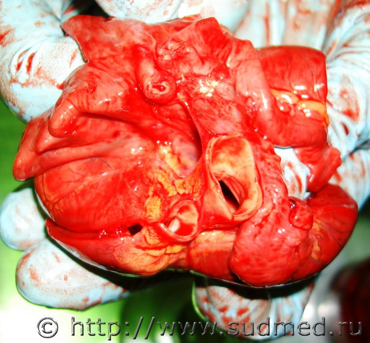![]() ![]() ![]() Плод 20-22 недели. К сожалению сфотографировала только снаружи. Мать попала в ДТП пассажир-комбинированный шок. При неповрежденных плодных оболочках у плода были разрывы печени, гемоперитонеум 5мл. ![]() ![]() |