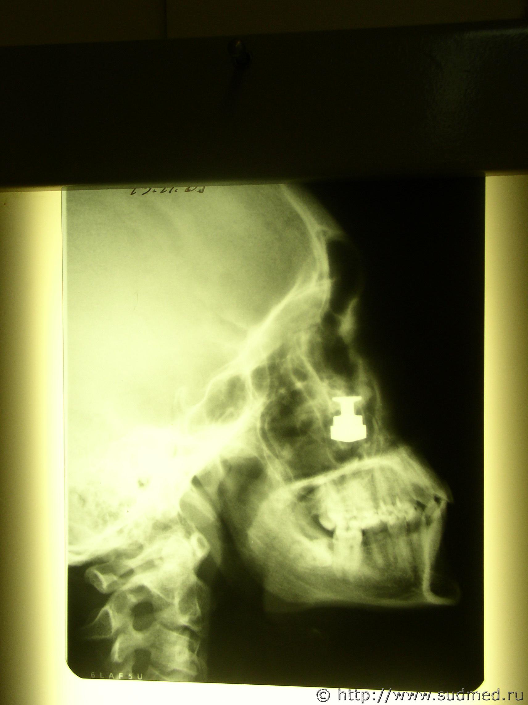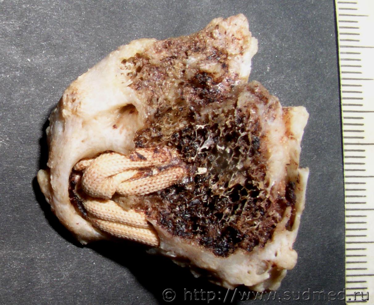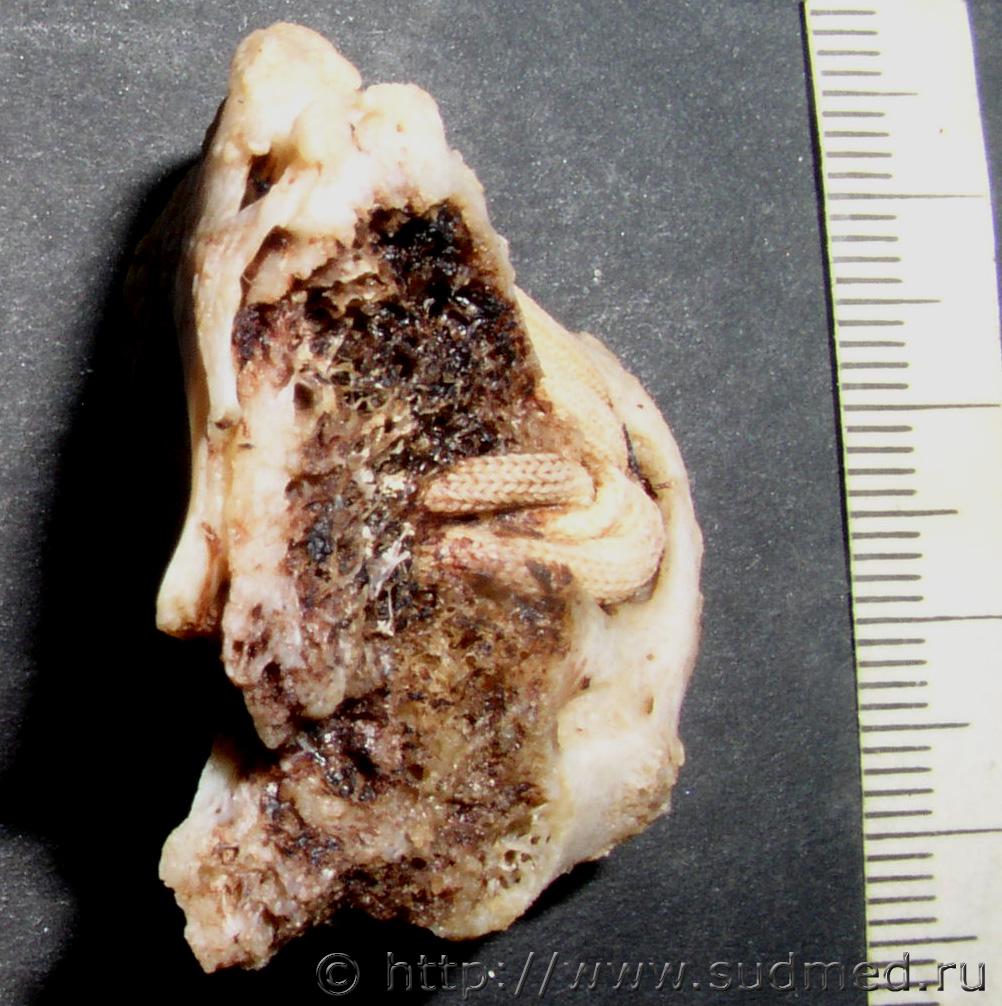 Пуля от "Осы" реальная, была экспертиза по "живым" лицам, добавляю переднюю проекцию рентгена. ![]() ![]() Синтетический шнур в малоберцовой кости. Скелетированные останки человека. В нижнем концевом отделе малоберцовой кости синтетический шнур (шнур откуда взялся - честно сказать сам не знаю, но задумки о том, что это была какая-то операция, тоже была). ![]() ![]() |