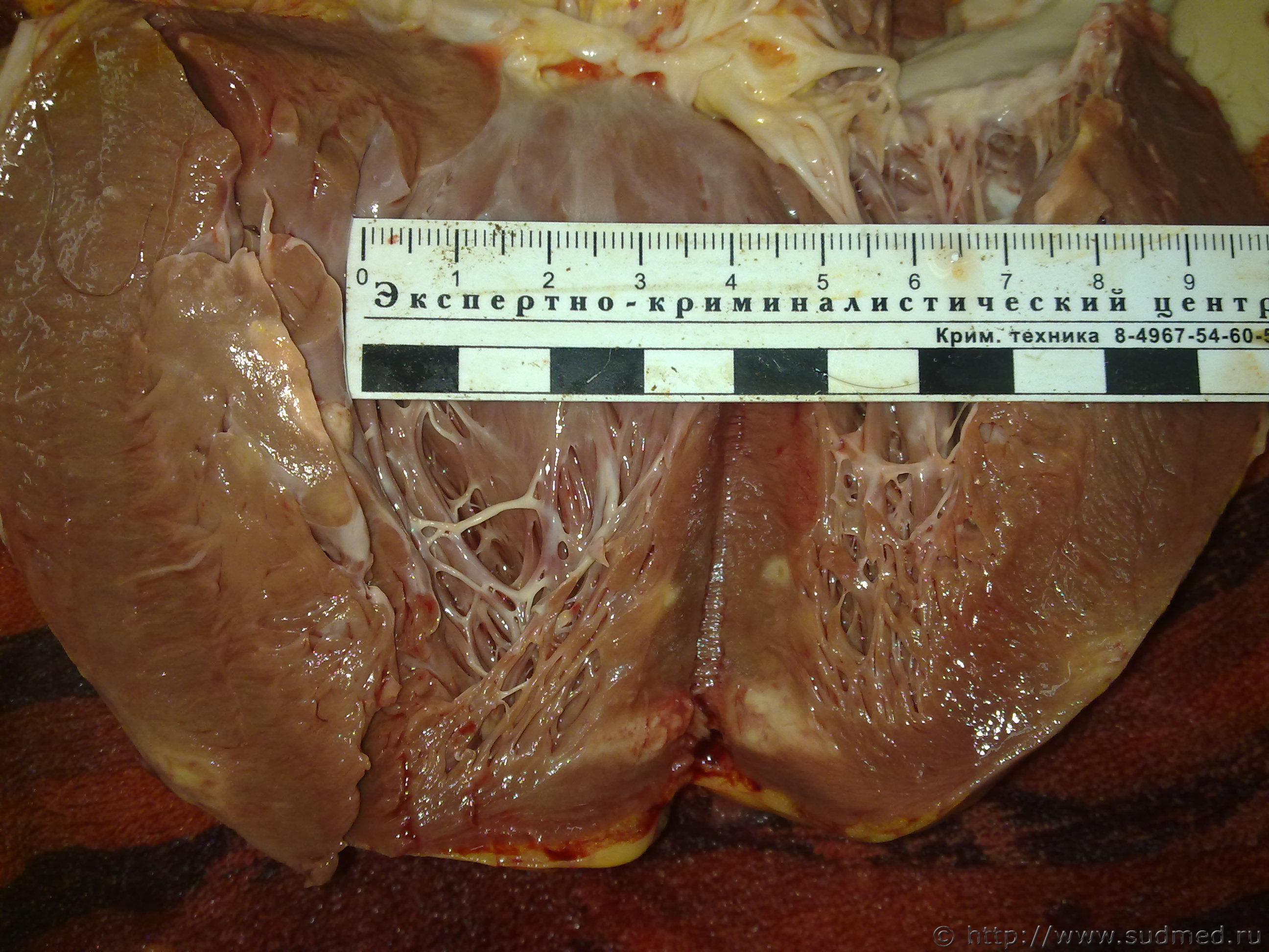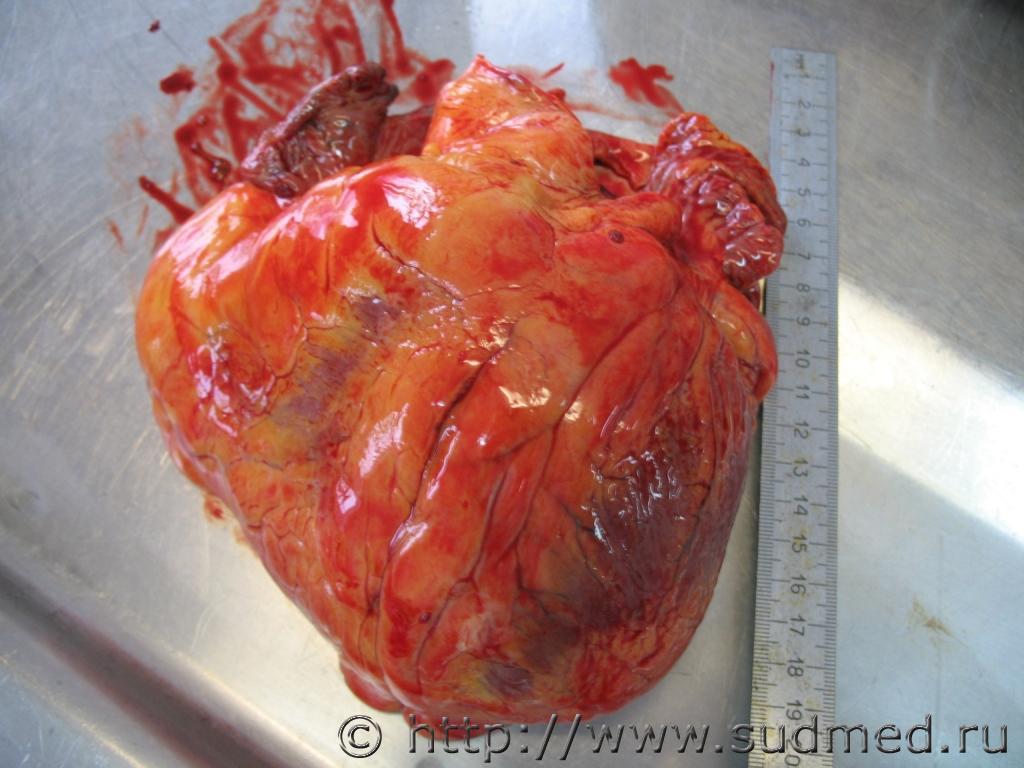 Мужчина,56 лет,находился несколько лет под наблюдением в поликлинике по поводу дилатационной кардиомиопатии.Вес сердца 904г.