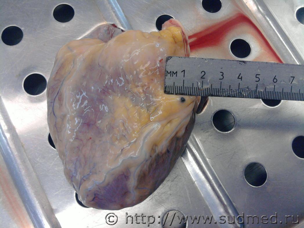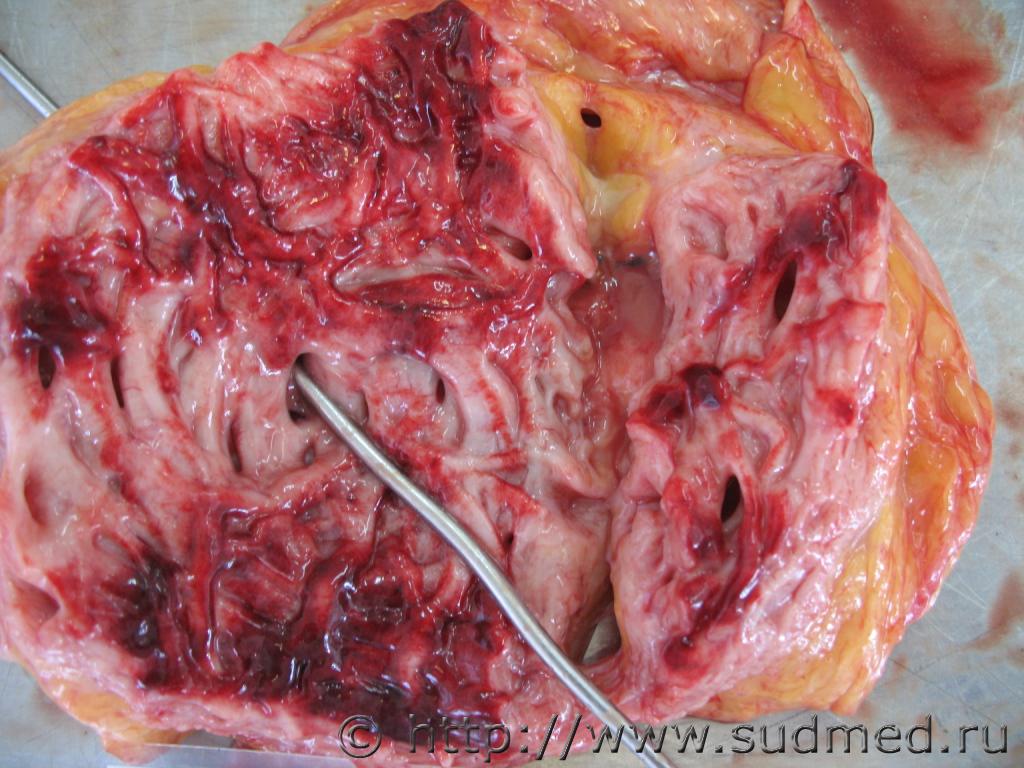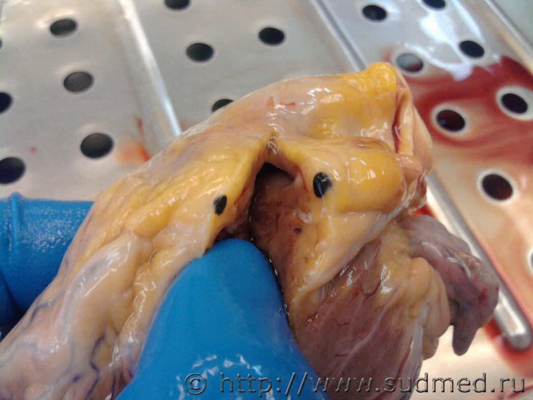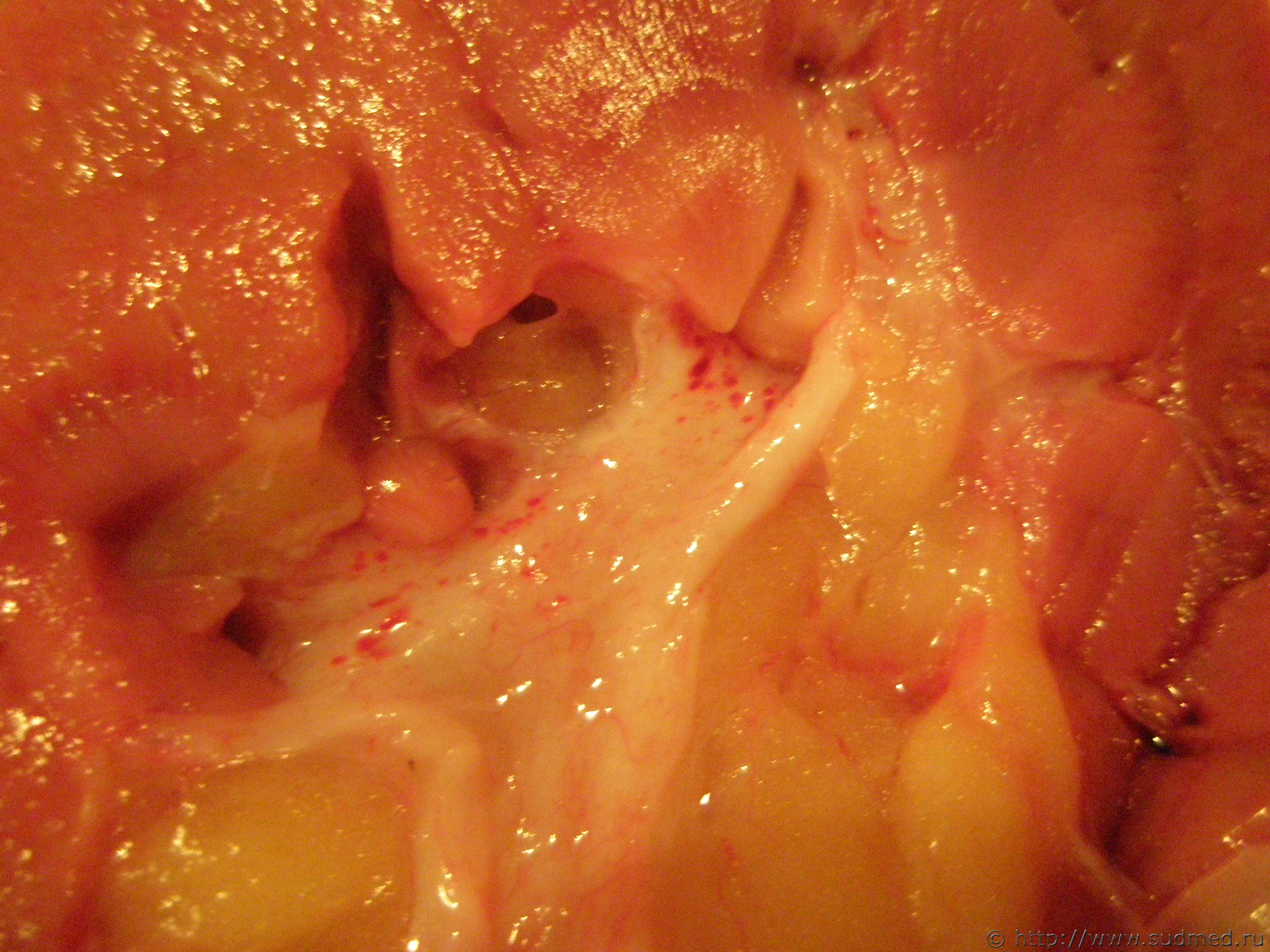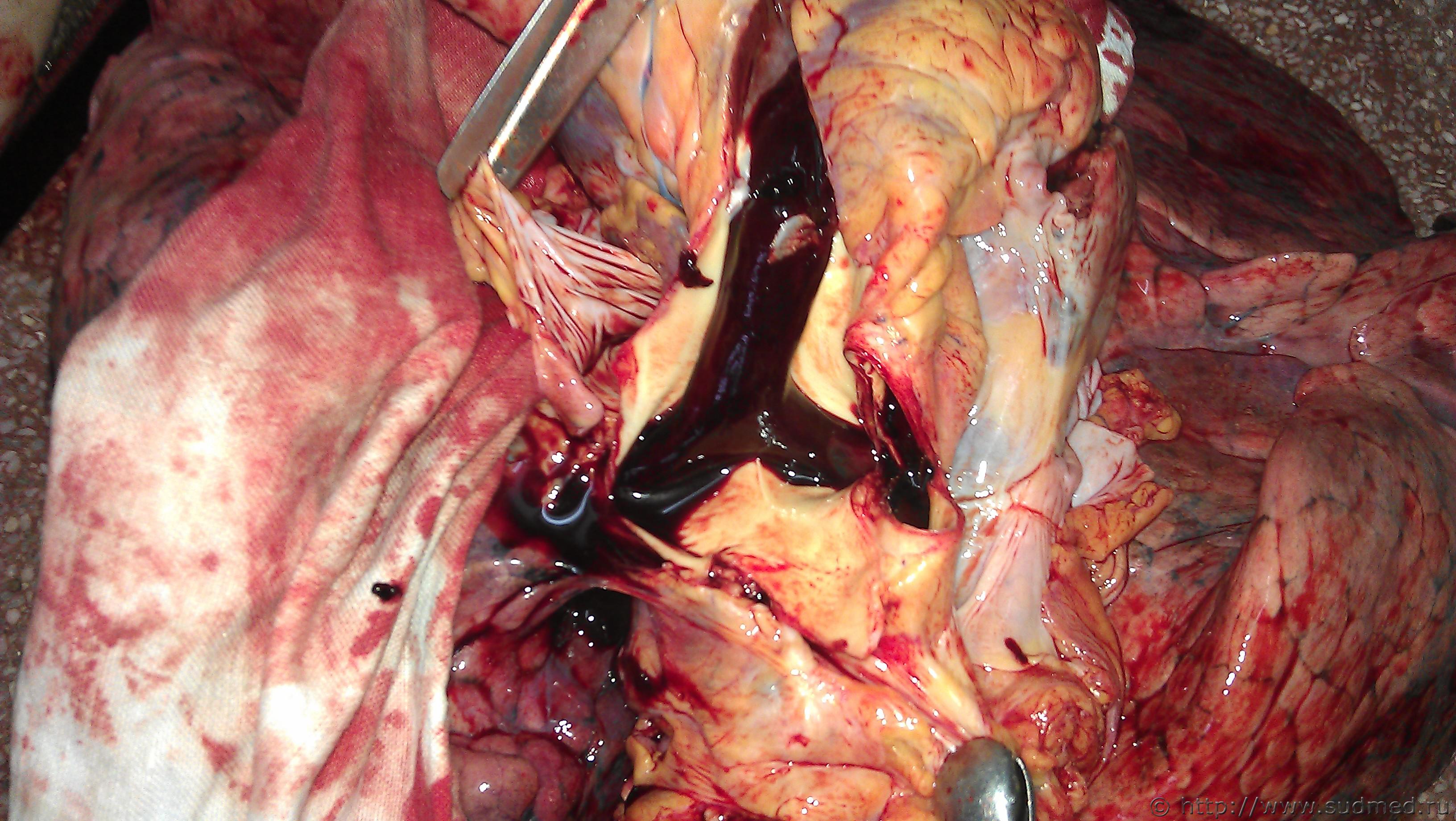 Уважаемый Ахмед. Это красный сверток крови, так как: 1) он повторяет просвет сосуда, в котором обнаружен; 2) с поверхности гладкий, блестящий, однородного темно-красного цвета; 3) остальная кровь в сосудах тоже не жидкая (из аорты сверток виднеется). При ТЭЛА будет прямо противоположное. А на прошлом фото у вас смешанный сверток крови. Да-да, ошибочка вышла! ![]() Прилагаю другой! Какая? Отвечу в другом разделе! Эскизы прикрепленных изображений ![]() |