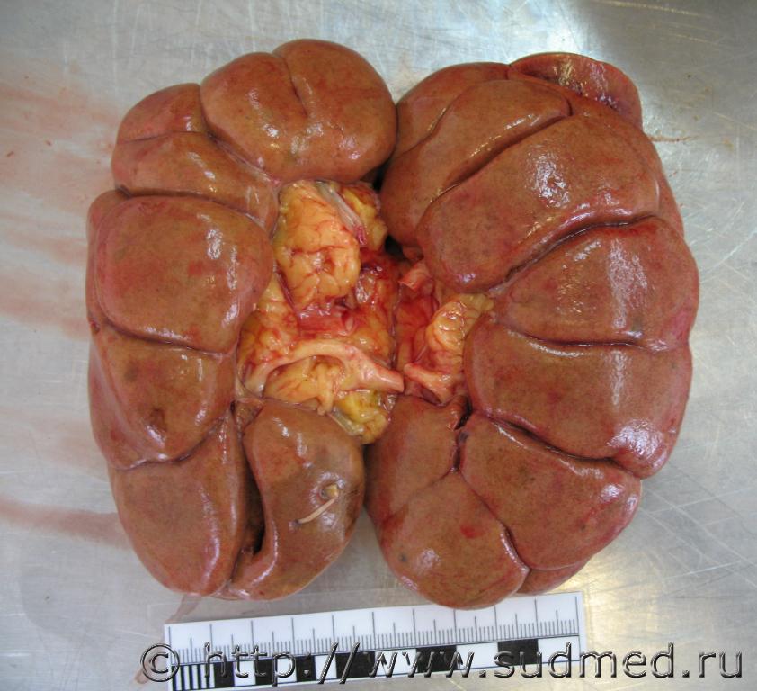 Сохранившаяся эмбриональная дольчатость почек.Труп гр-на 52 лет.