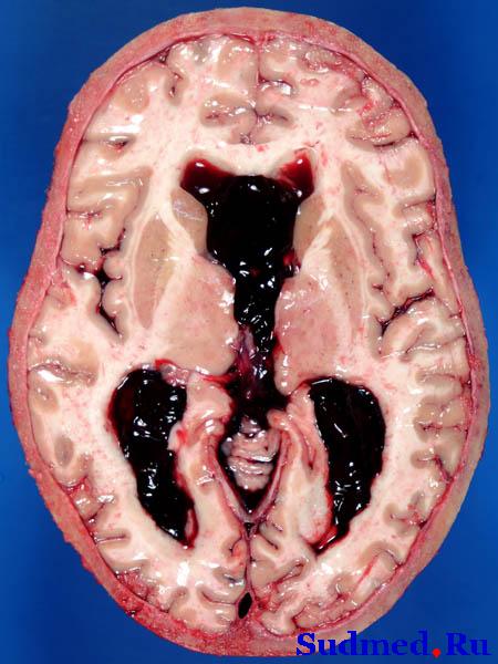 Кровоизлияния и сгустки крови в мозжечках, аневризма a. communicans anterior.