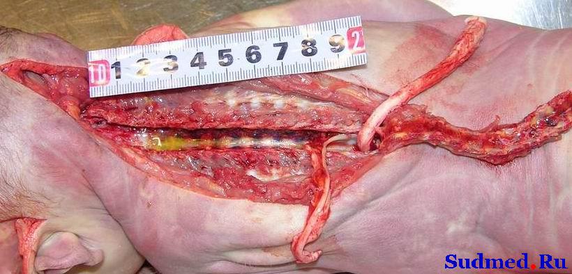 Труп молодого человека 22 лет, был доставлен в секционную из реанимации. Из истории: ехал в маршрутке, упал в эпиприпадке, скорой был доставлен в реанимацию, в сознание не приходил. В коме был 20 дней. Врачи из реанимации, присутствующие на вскрытии, утверждали, что больной приходил в сознание, и даже активно совершал целенаправленные движения. Но помоему, судя по характеру заболевания, это нонсенс. Также больной залит (отёк мозга, отёки всех внутр. органов, транссудаты в полостях, причём, в правой плевральной полости жидкости до 1,5 л). Я сразу обратил внимание на то, что труп из реанимации, и подключ. катетер был вытащен, хотя этого недолжно быть. Смотрю правый купол плевры, а там, как вы думаете? ПРОКОЛ! Но хотя и больной был обречён, пишлось пошуметь, по поводу реанимации. |