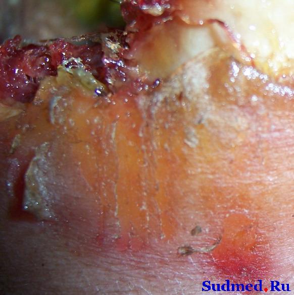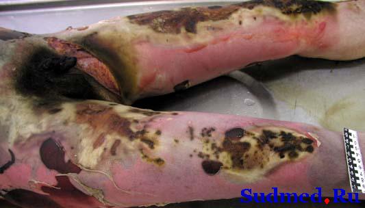 Самоубийство: Товарищ П. закусил металлическую сетку электрического заграждения - фото 1 отпечатались ячейки сетки, фото 2 множественные электрометки - лежал на передней поверхности туловища на земле. Фото с МП к сожалению нет, электрометки еще были на предплечьях и кистях, по передней поверхности туловища электрометок не было, возможно связано с тем, что на туловище было одето больше слоев одежды чем на н.к. |