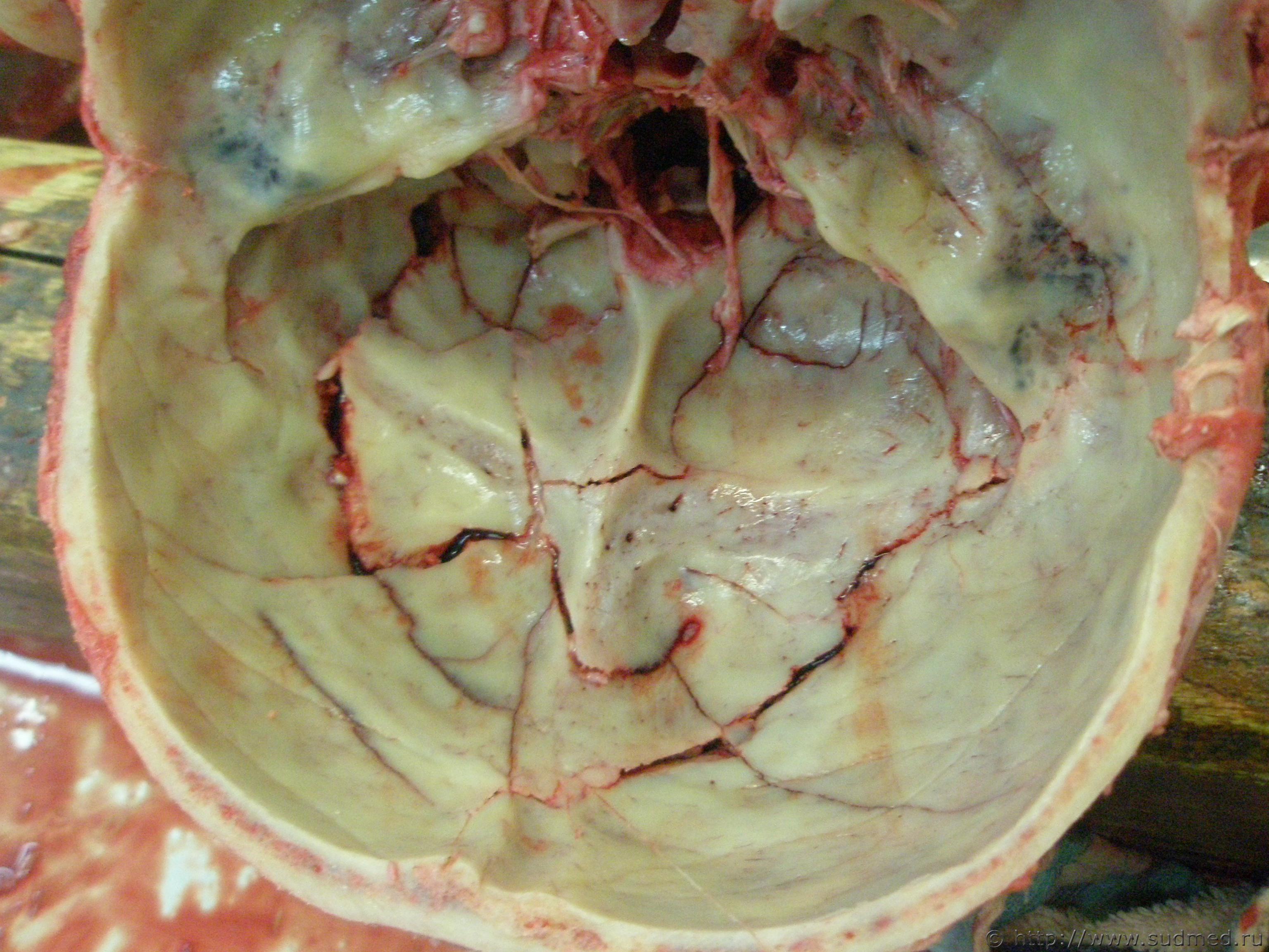 Перелом затылочной кости по типу паутинообразного, падение с 3-го этажа.