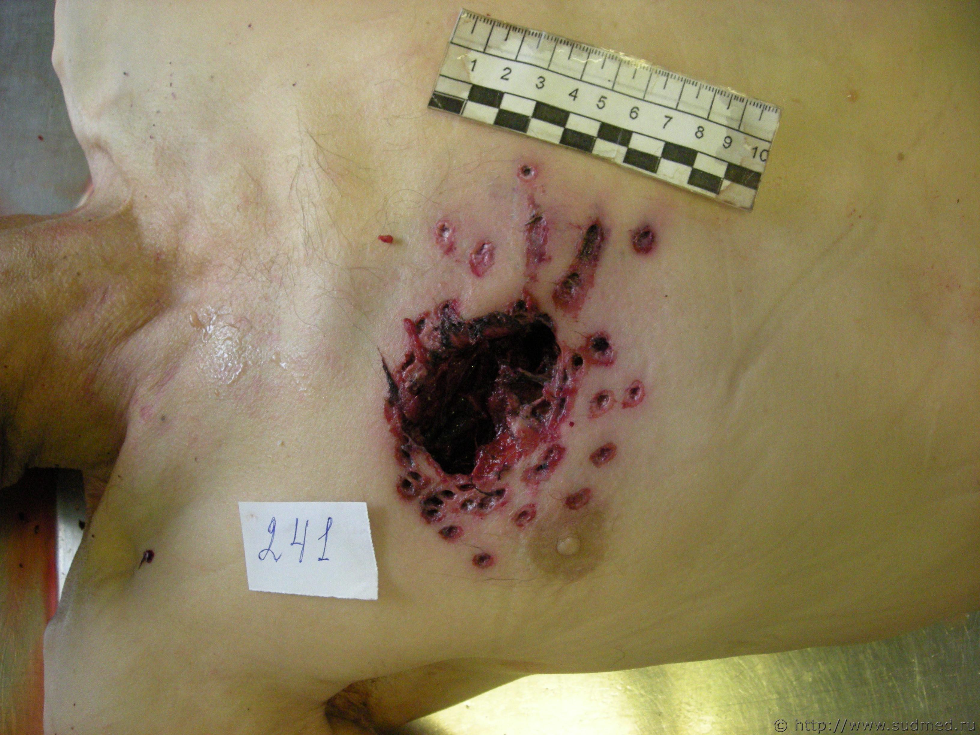 Огнестрельное дробовое ранение грудной клетки с близкого расстояния