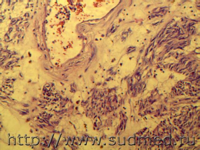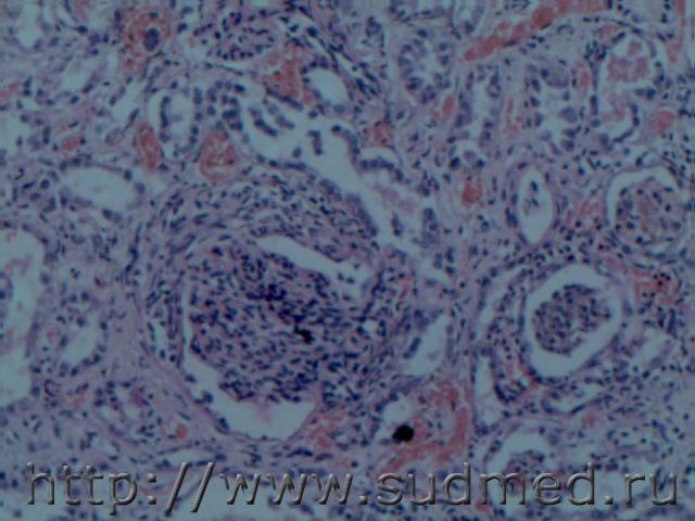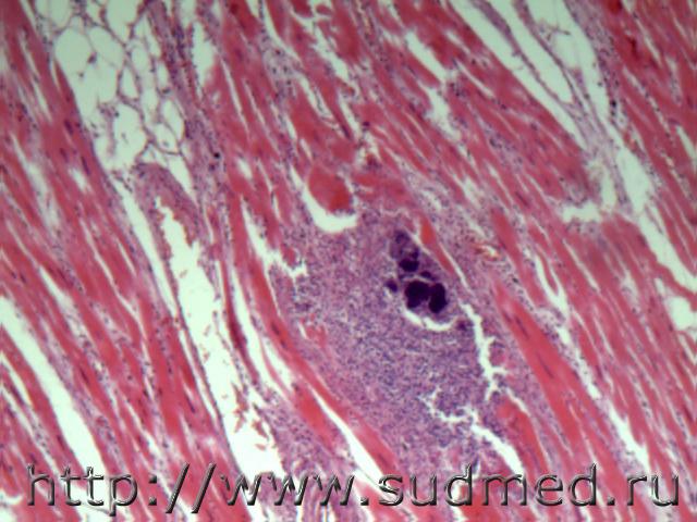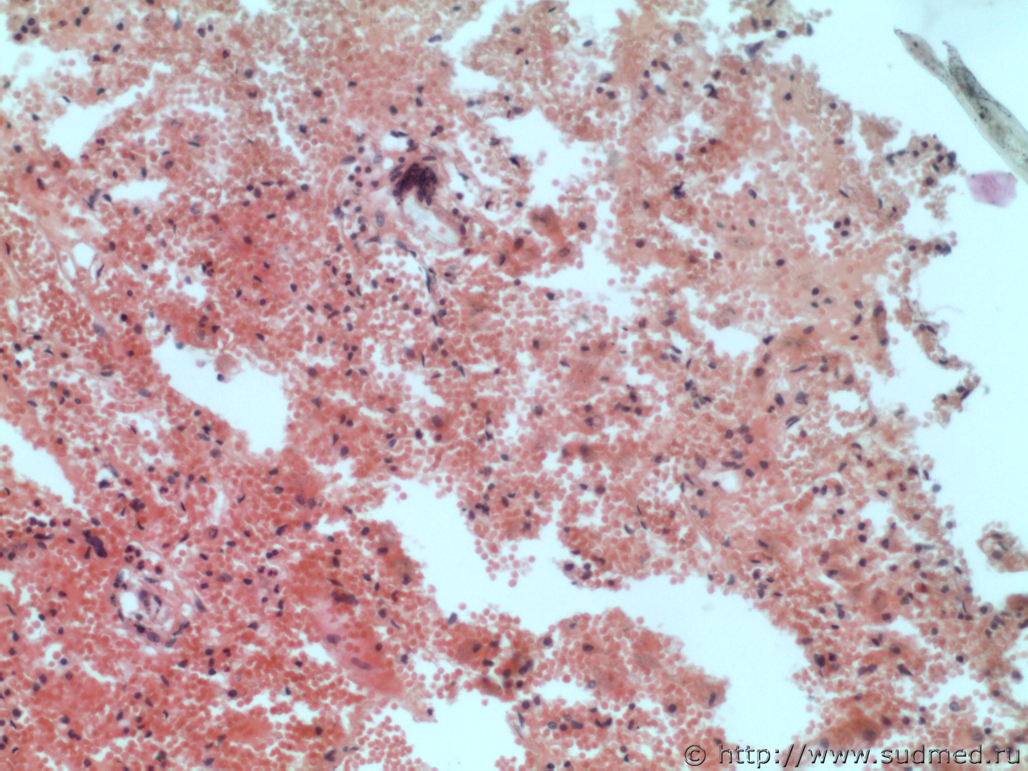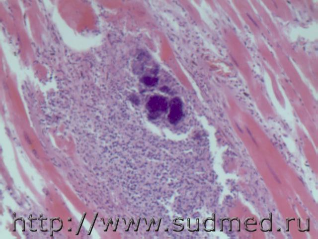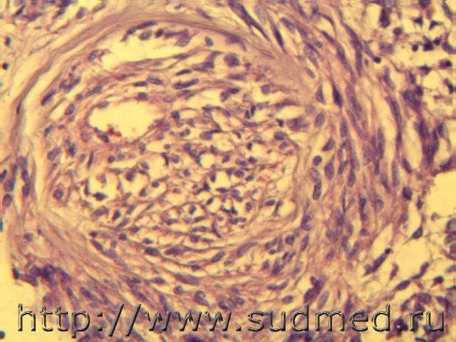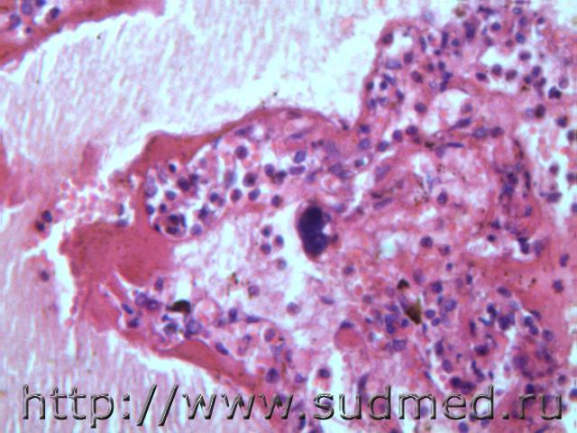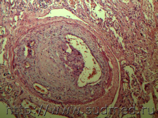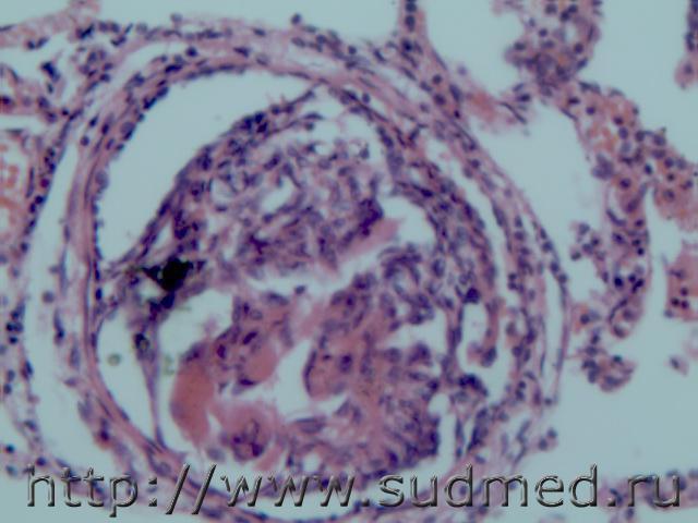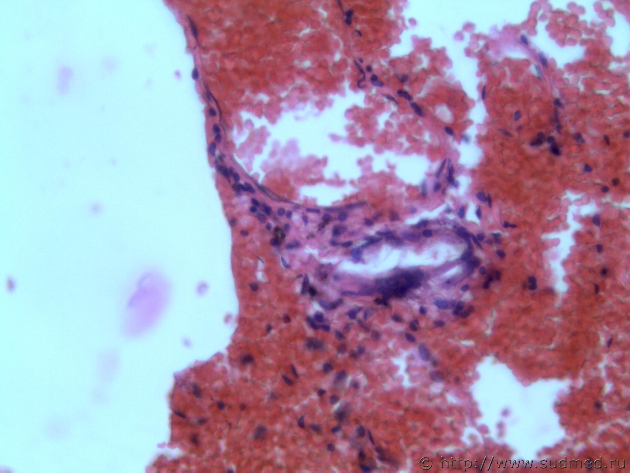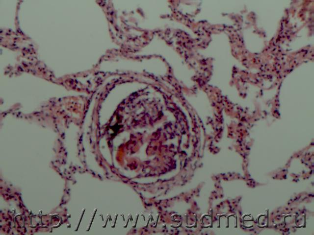 Ув.Unior Вы правы! Подверждение к Вашему наблюдению в просвете сосуда прозрачный кристаллик( бывает и голубоватого цвета и прозрачные), продуктивный васкулит с гигантским клетками по типу инородных тел и кровоизлияния в альвеолах при отравлении наркотическим веществом
