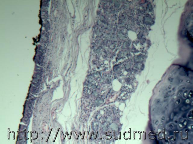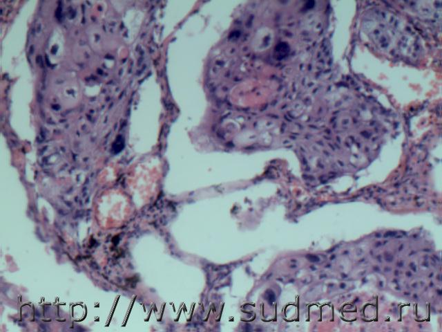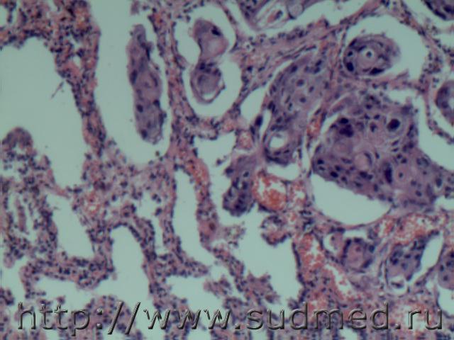 метастатический плоскоклеточный рак в легких.копоть на эпителии слизистой трахеи