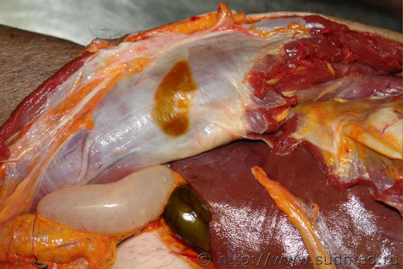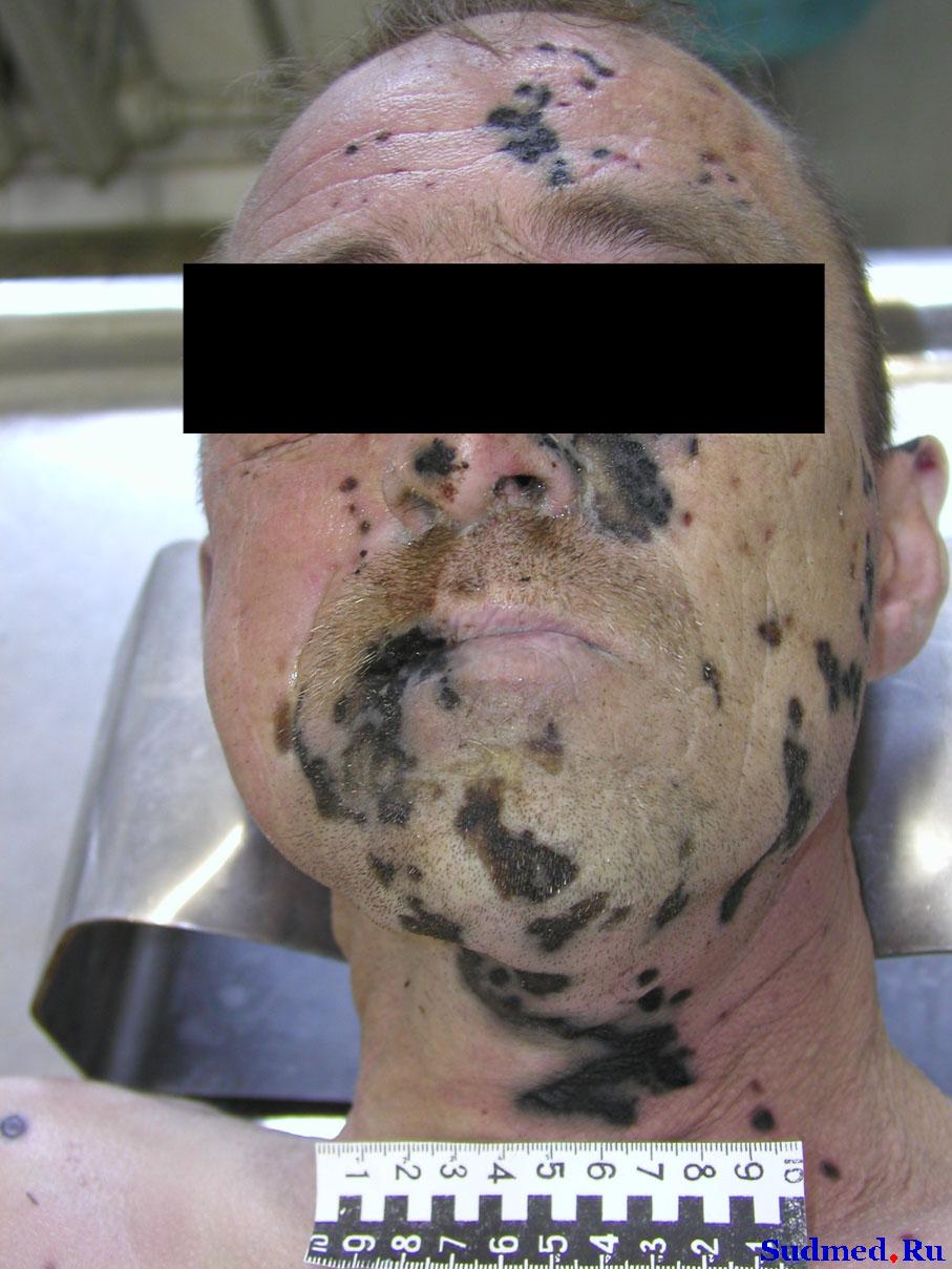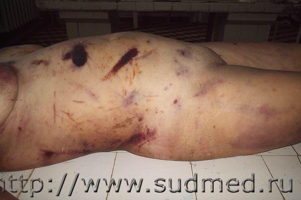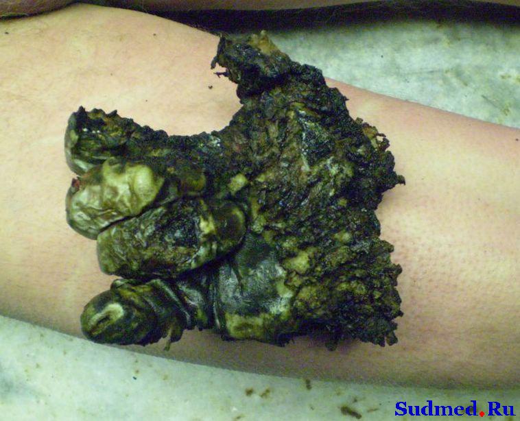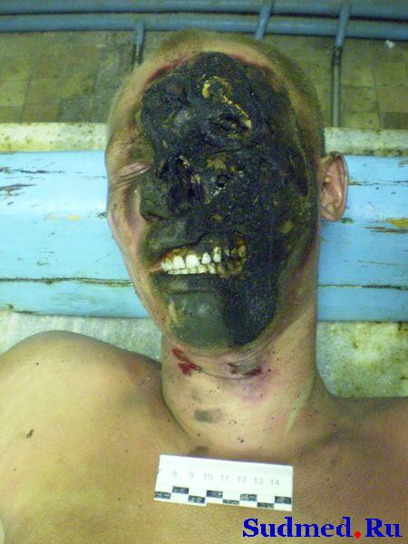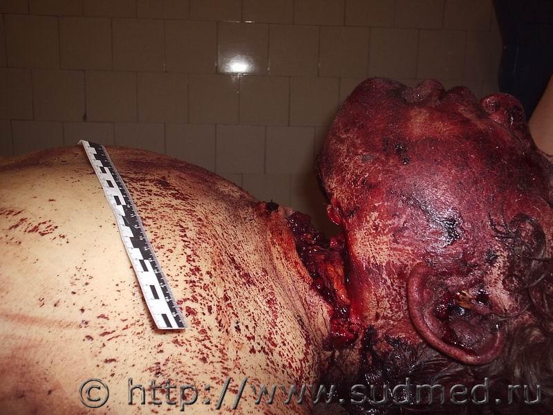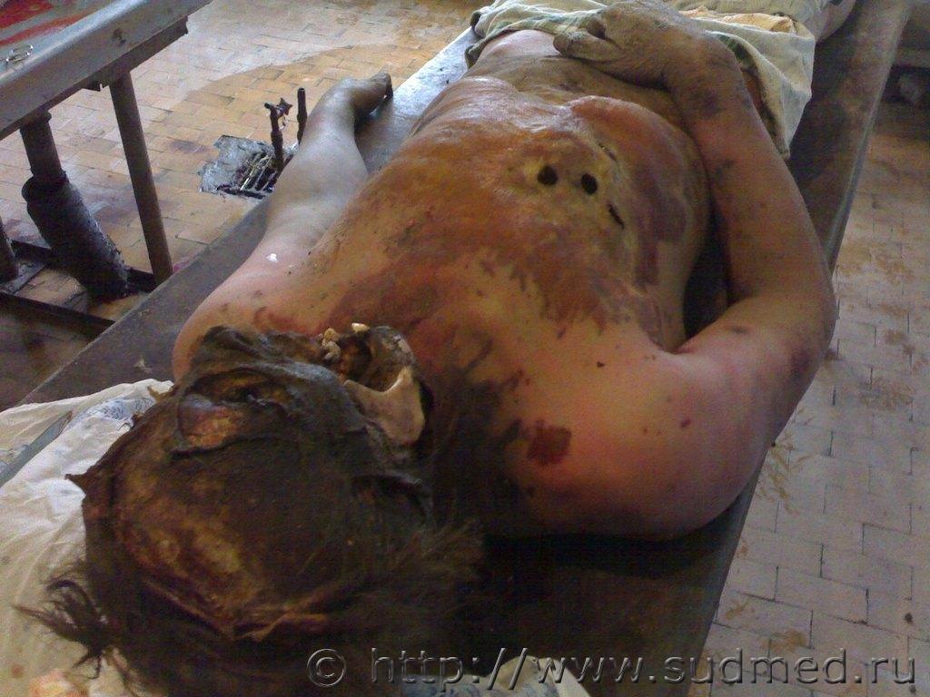Вот еще случай. Повреждения причиненные животными. В данном случае разбушевавшийся бык из стада коров убил пастуха-молодую щенщину. Дело было в открытом поле, спрятаться некуда. Бык наносил неоднократные удары рогами и копытами, подбрасывал вверх, отбрасывал в сторону. Причина смерти: Сочетанная травма. Закрытая тупая травма грудной клетки с множественными переломами ребер справа и слева Разрыви отбеих легких. Закрытая тупая травма брюшной полости с множественными разрывами печени, селезенки, петель тонкого кишечника. Массивная внутригрудная и внутрибрюшная кровопотеря. ![]() ![]() ![]() ![]() ![]() Взрывная травма. Сварщик резал металлолом с завода по производству гексогена и тротилла. В частности резал трубы со старых весов, на которых взвешивались данные взрывчатые вещества. За много лет в корпусе весов и в частности в полости труп попало большое количество взрывоопасной пыли, а это никто не мог предвидеть, весы сдали на металлолом и когда сварщик присев возле них стал резать автогеном, произошел взрыв. ![]() ![]() ![]() ![]() ![]() |