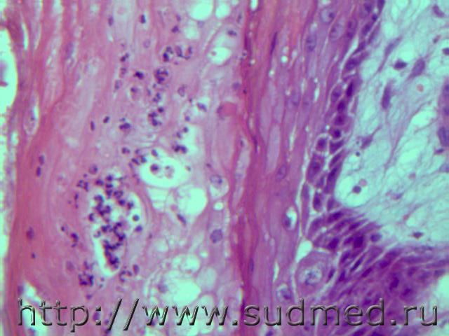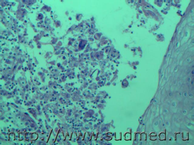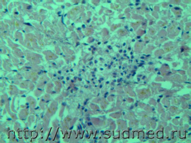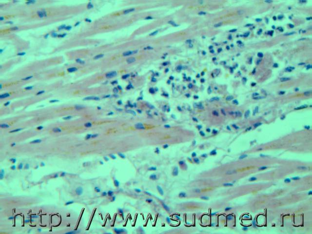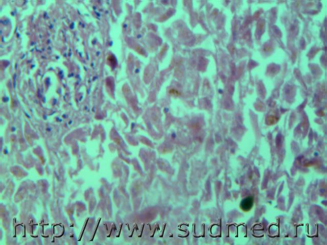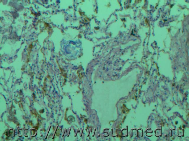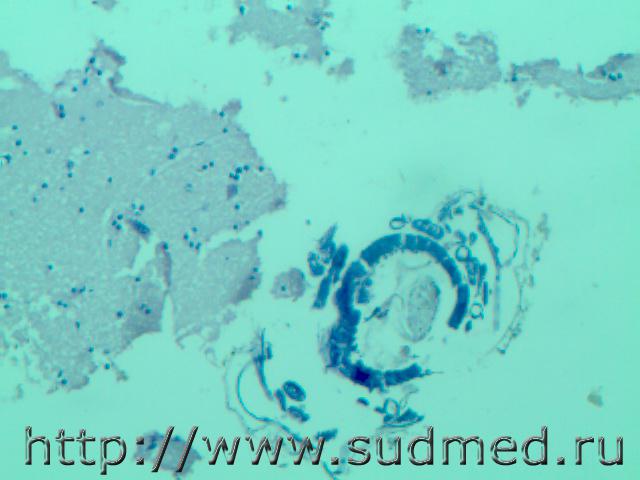 В просвете альвеол грибково-паразитарное тело?!( м.б. артефактные черви)при сепсисе(апостоматозные очажки во внутренних органах). И головном мозге грибково-паразитарное тело и очаги гнойничков в головном мозге, почке и в миокарде. В цитоплазме кардиомиоцитов видно перинуклеарное пылевидное скопление липофусцина желтоватого цвета. Эскизы прикрепленных изображений |