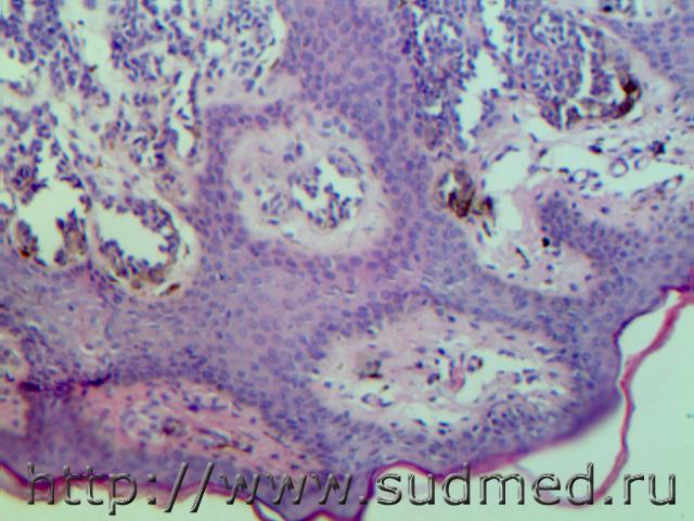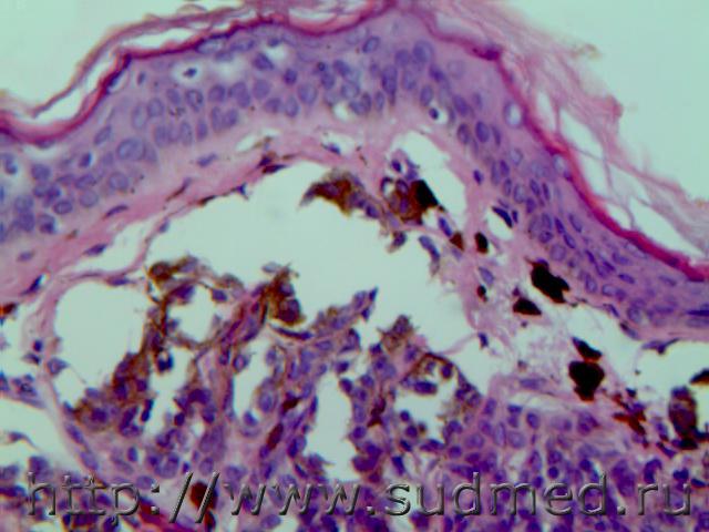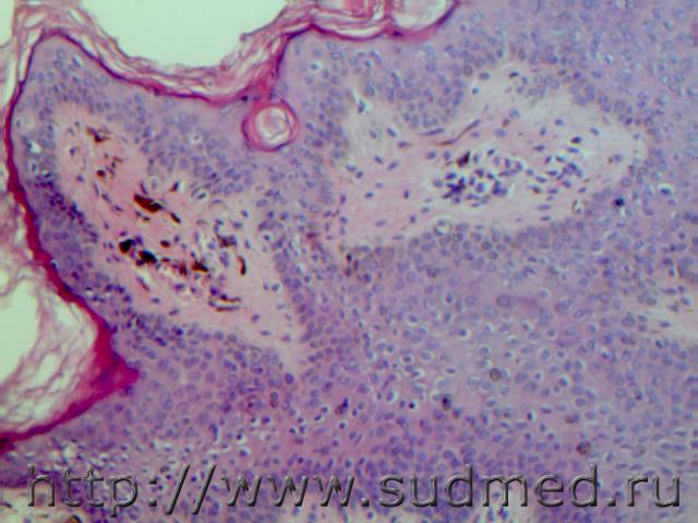 Смешанный невус (внутридермальный и пограничный) с единичными меланоцитами, предвестник невус -меланомы.