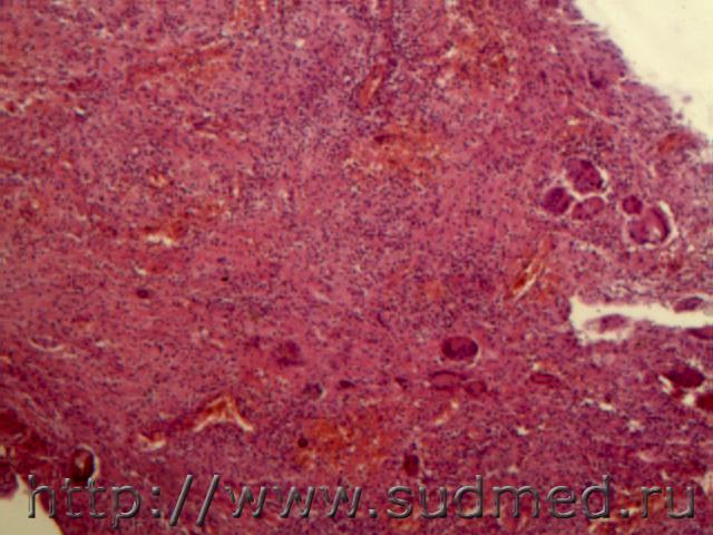 Гигантоклеточная гранулема(опухоль)лица(операционный материал) М.23года.Клинический диагноз- кистозное образование лица.