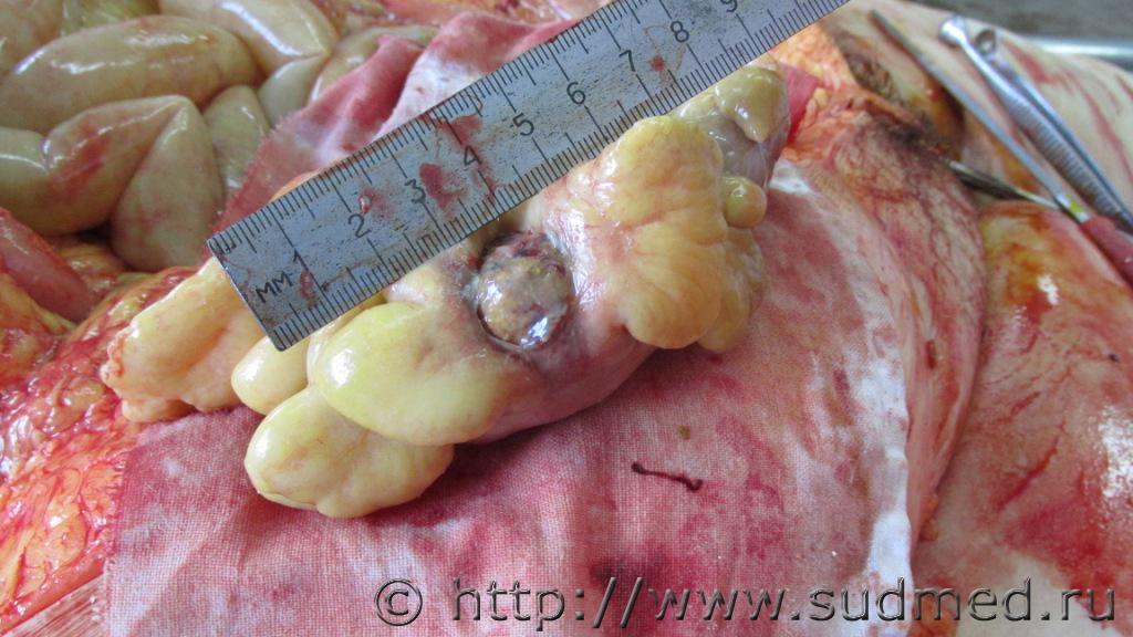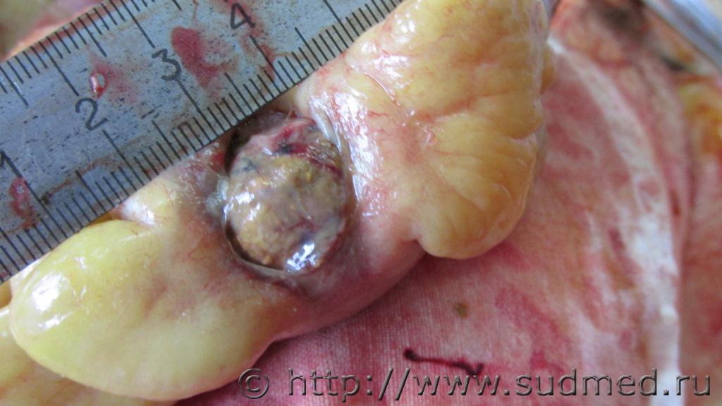 Перфорация стенки сигмовидной кишки каловым камнем.