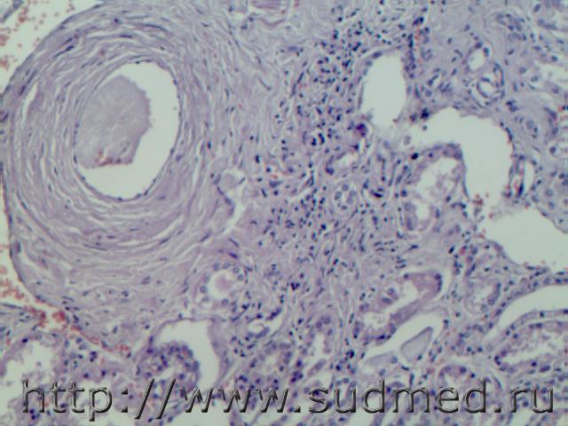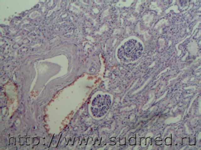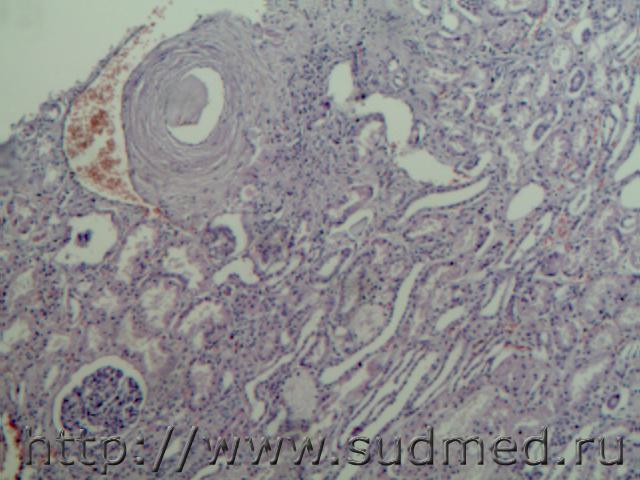 Склероз артерии мягкой мозговой оболочки и почки при генерализованном атеросклерозе..