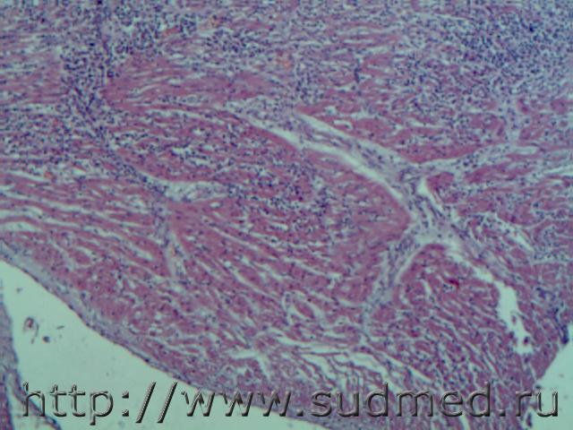 ВПС.ДМЖП. Диффузный интерстициальный миокардит(панкардит)( повреждение миоцитов с вакуолизацией субэндокардиально .Мальчик 5месяцев.