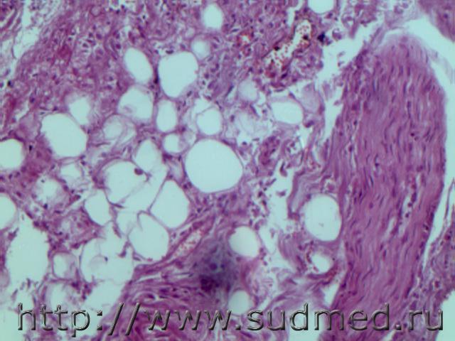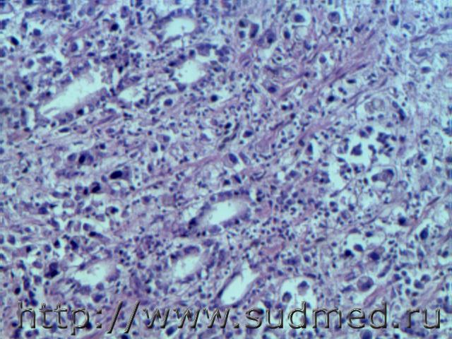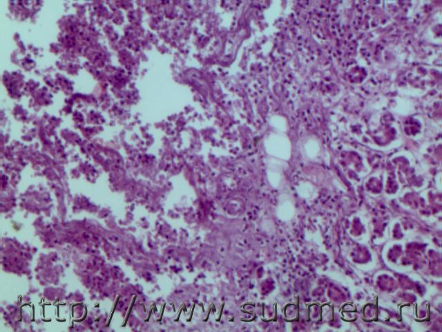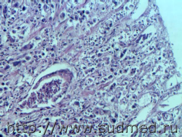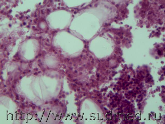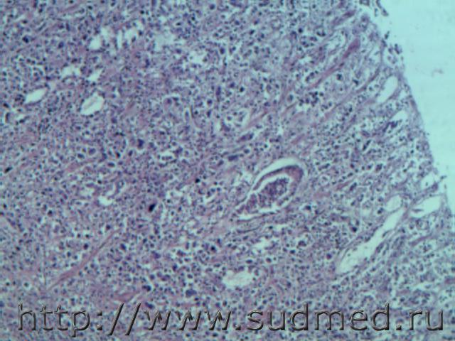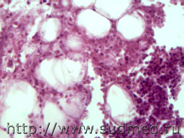 Есть некроз,немного нейтрофильных лейкоцитов.А где же "гной" с большой буквы?