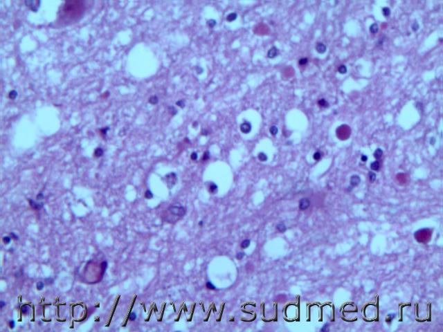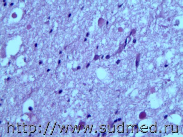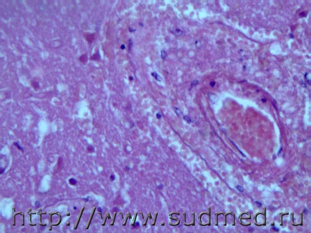 ЦВЗ. ОНМК по смешанному типу преимущественно в веществе ишемические очаги в стадии резорбции, местами с тенденцией образования псевдокист, множество зернистых шаров, микроглиально-макрофагальная реакция, гиалиноз, склероз артериол и т.д.