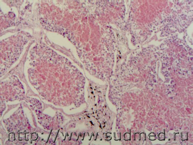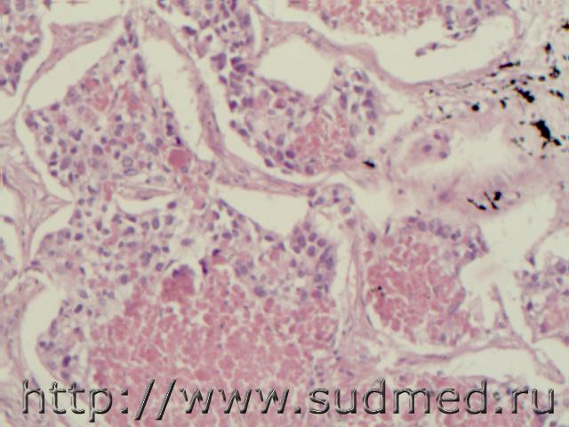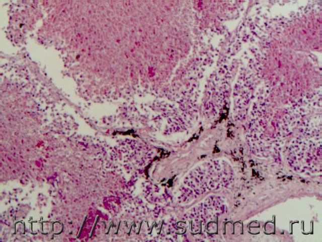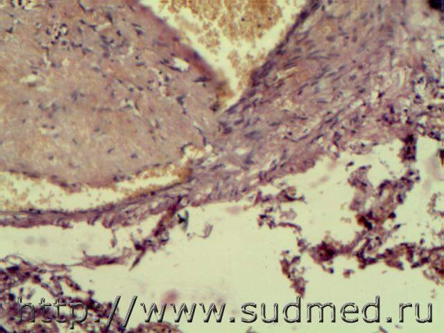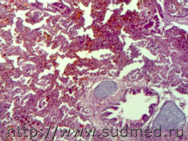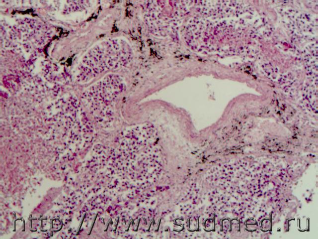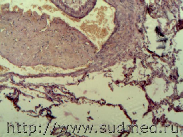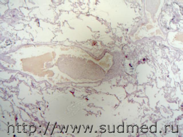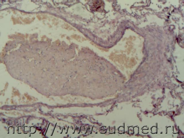 Тромбоз сосудов легких( четкое прикрепление тромба с поврежденного участка эндотелия стенки сосуда).