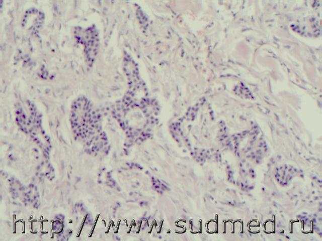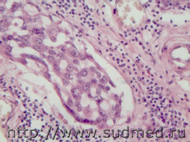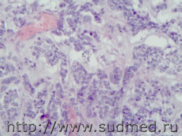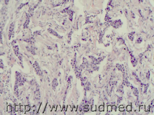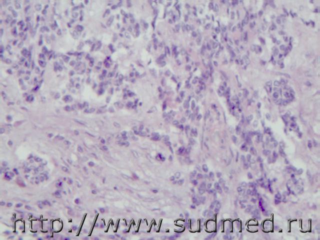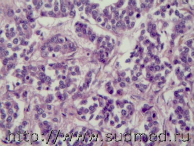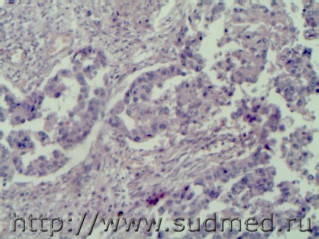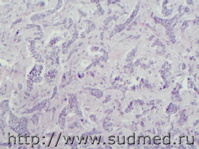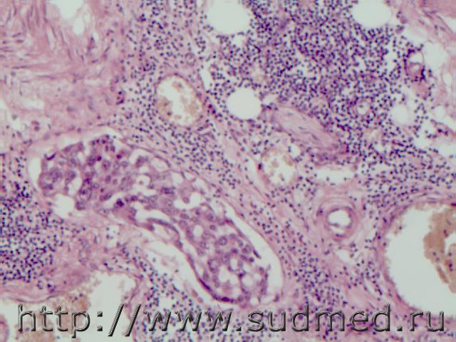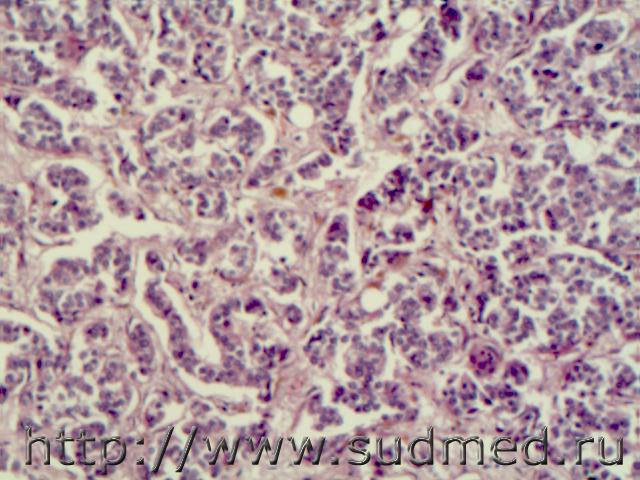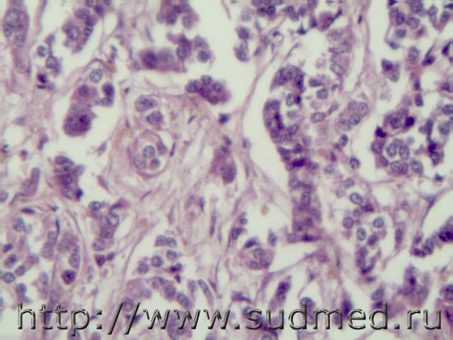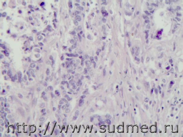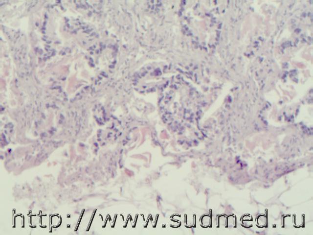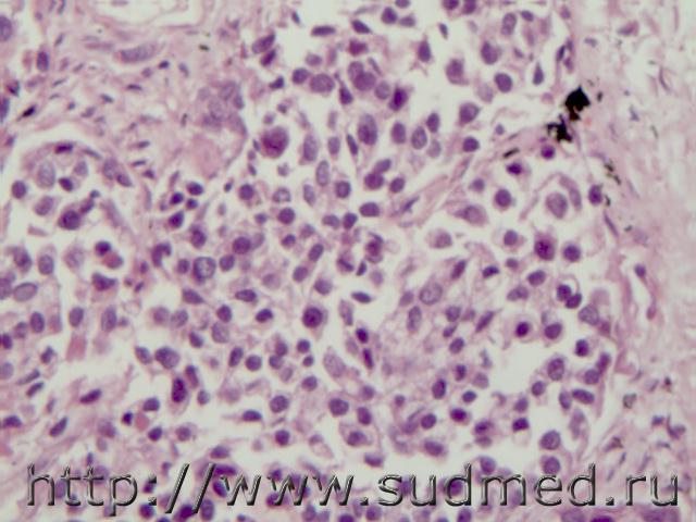 Полиморфноклеточный внутрипротоковый рак молочной железы с метастазом в легкие.