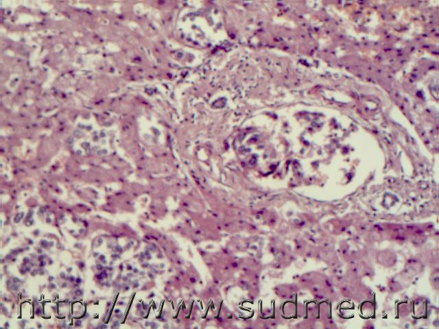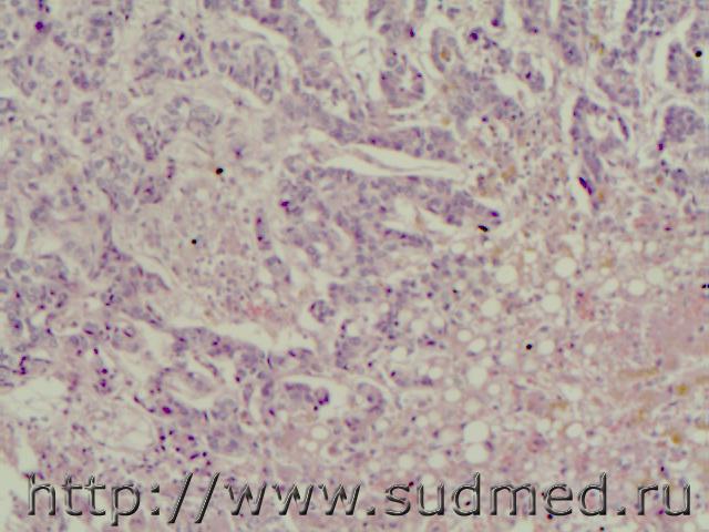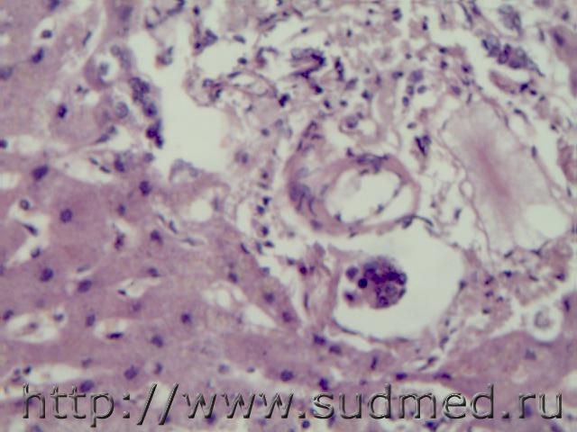 Метастазы в печень плоскоклеточного рака не уточненной локализации( в печени опухолевые эмболы и в лимфатическом узле в синусоидах опухолевые эмболы).
