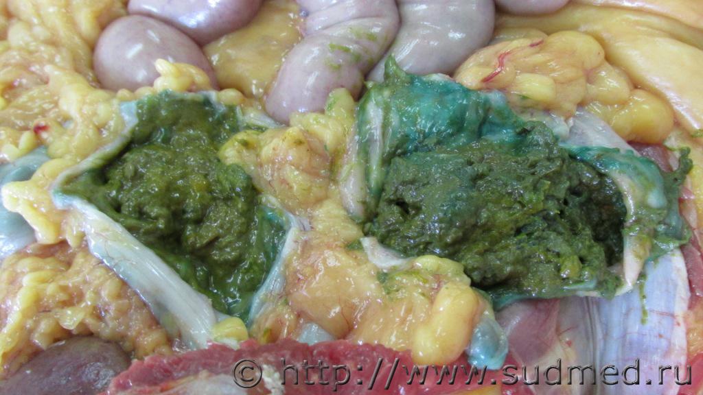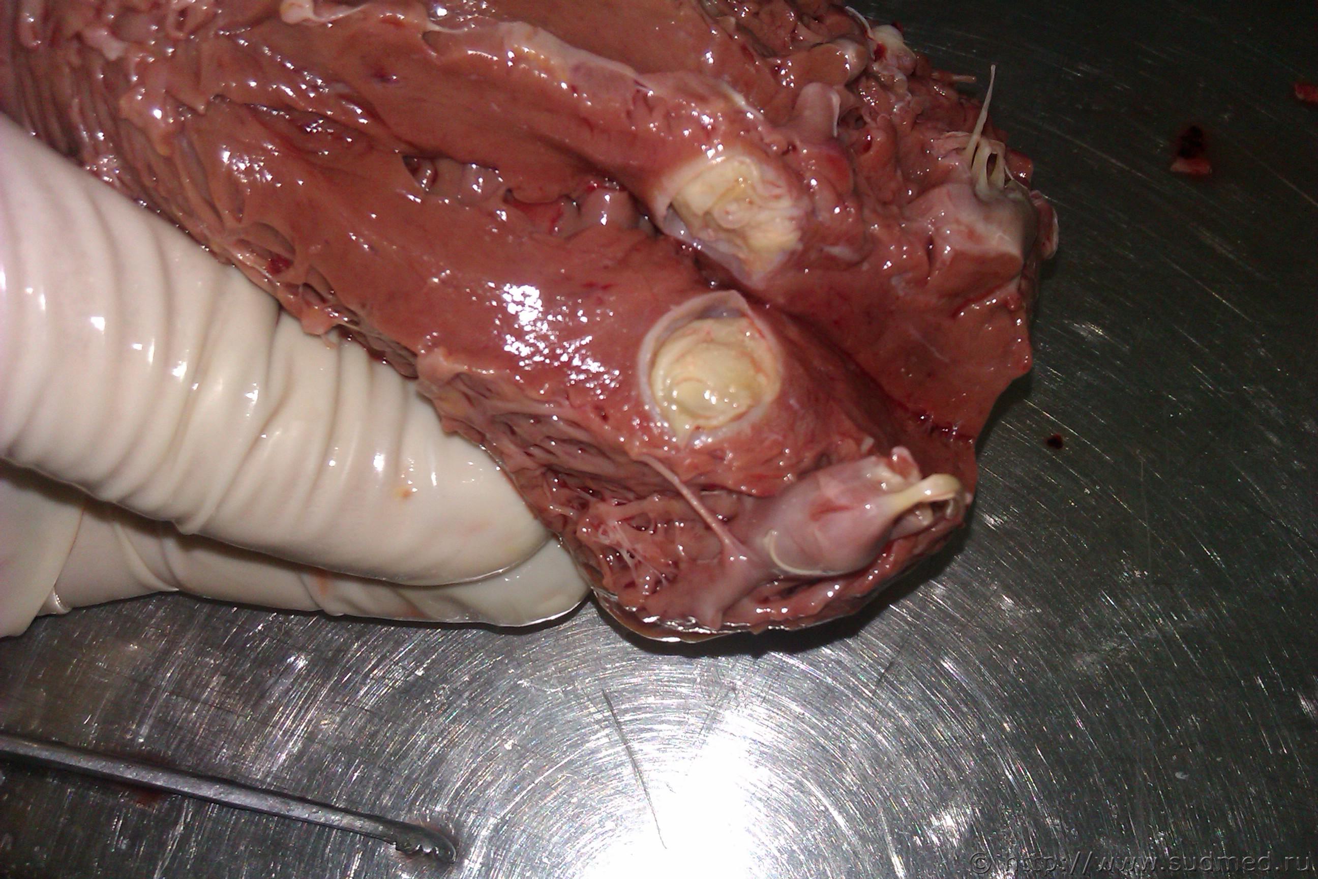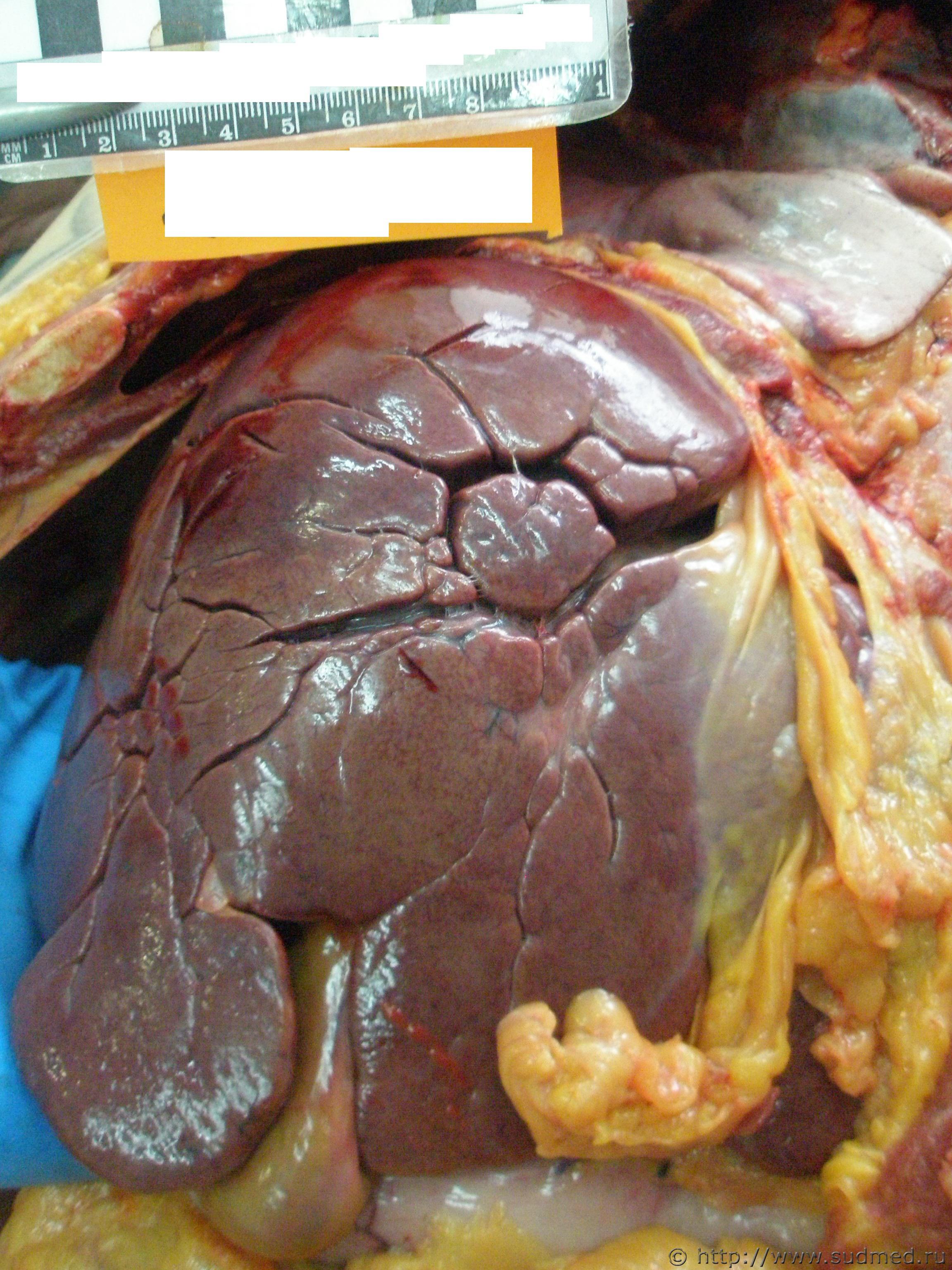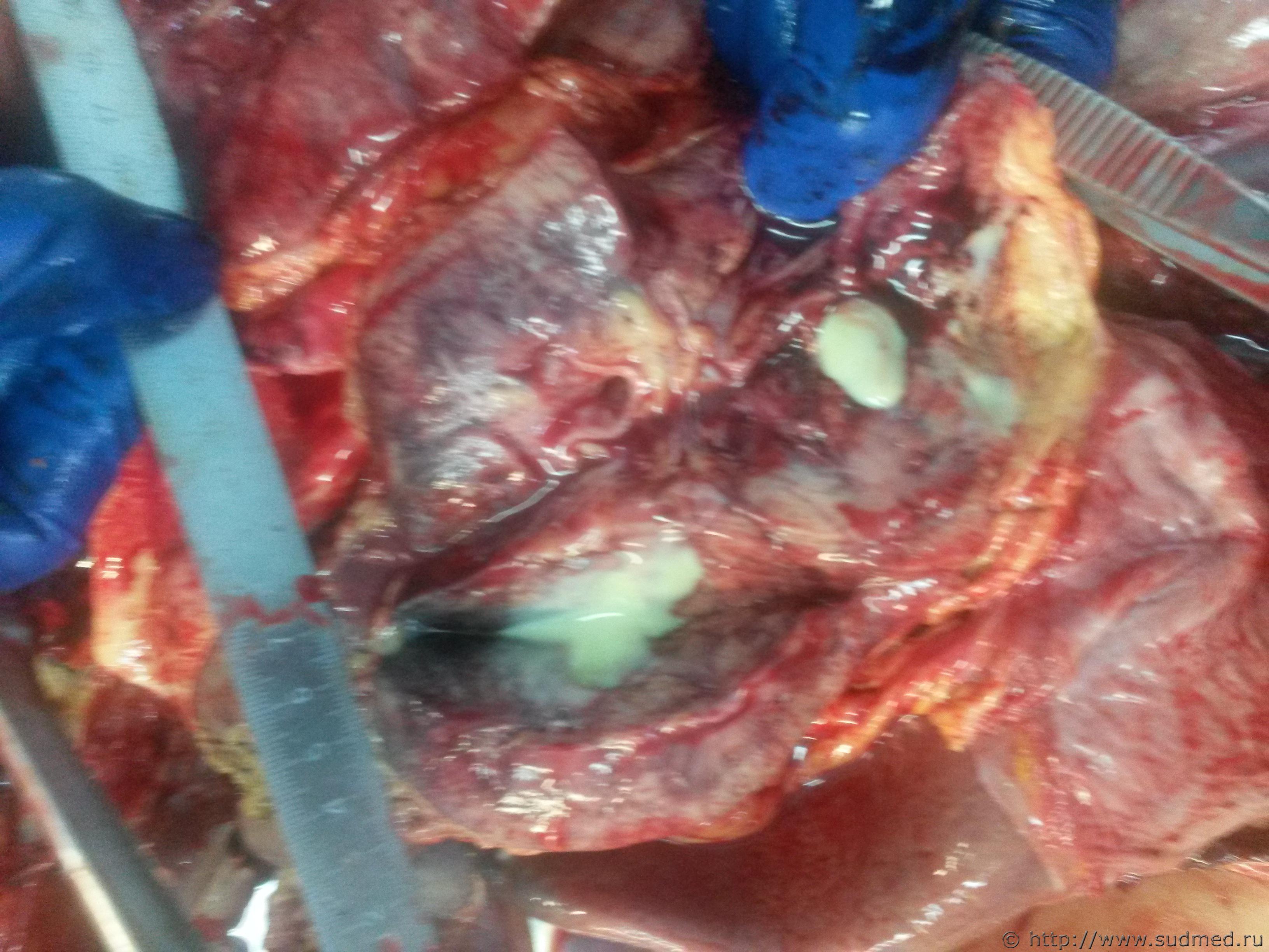 Вот такие изменения печени обнаружены на вскрытии. На висцеральной поверхности печени аналогичные изменения.