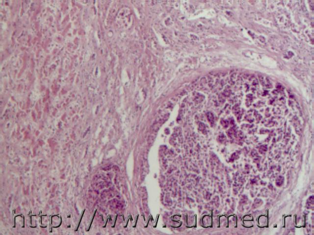 Нехроммафинная параганглиома (злокачественная) с метастазами в печень и легкие(в плевре и в сосудах эмболики).