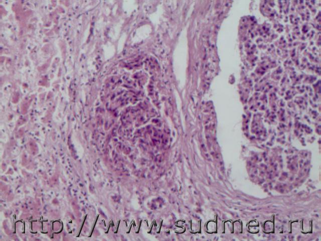 Нефробластома эпителиальная у взрослого(тубулярного и псевдососочкового типа) с метастазом в печень.