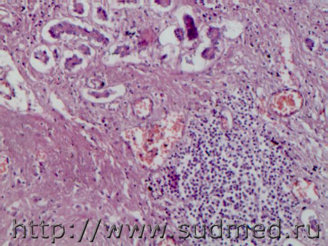 Острый двусторонний гнойный апостематозный пиелонефрит. Карбункулы почек. Простите за качество фото.