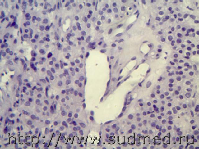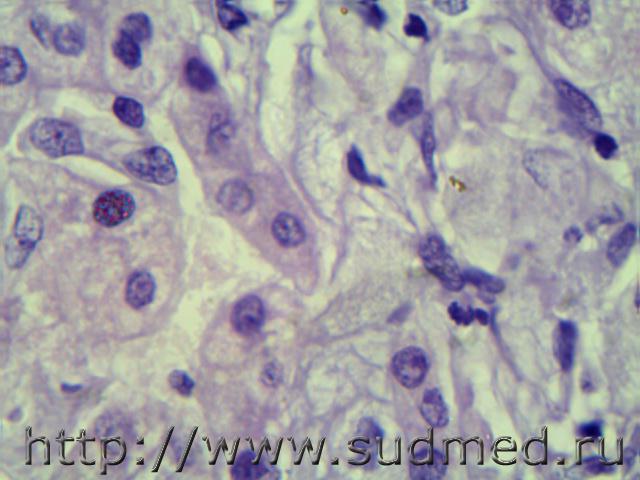 М.76 лет. Гепатоцеллюлярный рак печени, ацинарный тип.