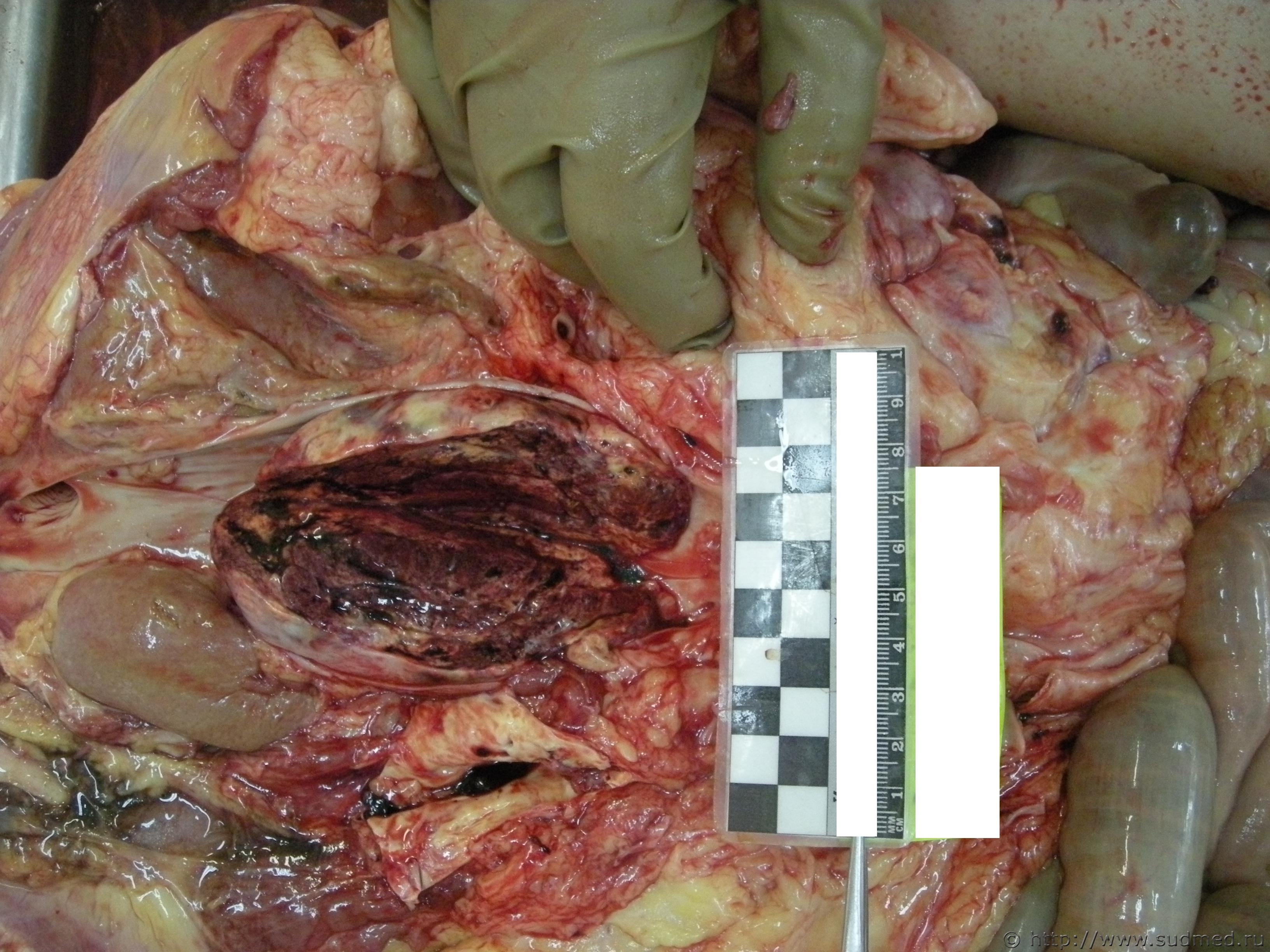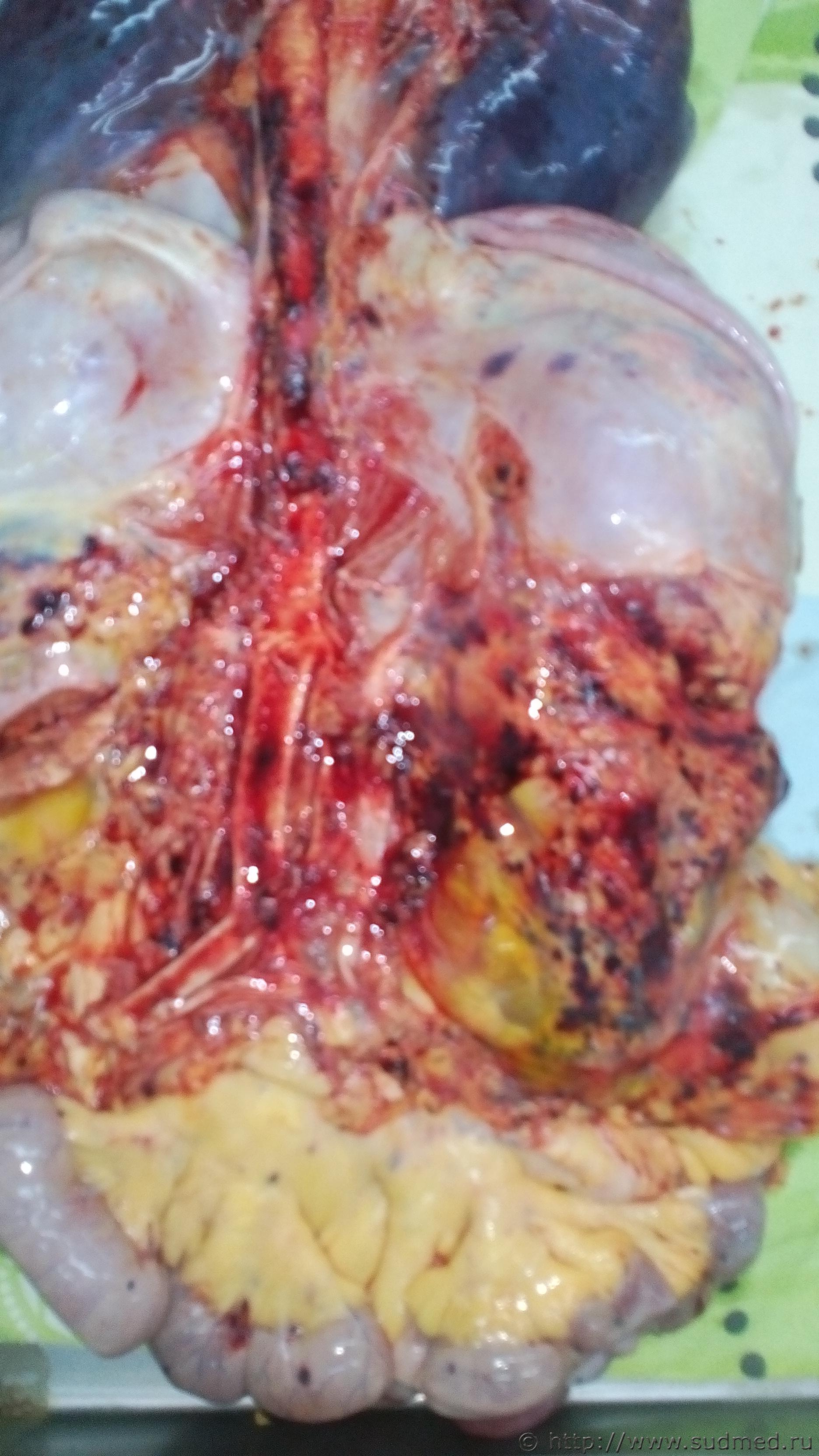 Ж.37 лет.3-я берем.41-42нед. Индукция мизопростолом. Дискоординированная родовая деятельность. Нераспознанный начавшиися разрыв ш/м. Внеплановое экстренное Кесарево сечение.Гематома в параметрии, малый таз, в верхние этажи брыжейки.ЭОВ. Экстирпация матки, Тотальное удаление толстого отдела кишечника( от слепой до сигмы). ЭКМО, ИВЛ не увенчались успехом. Смерть.