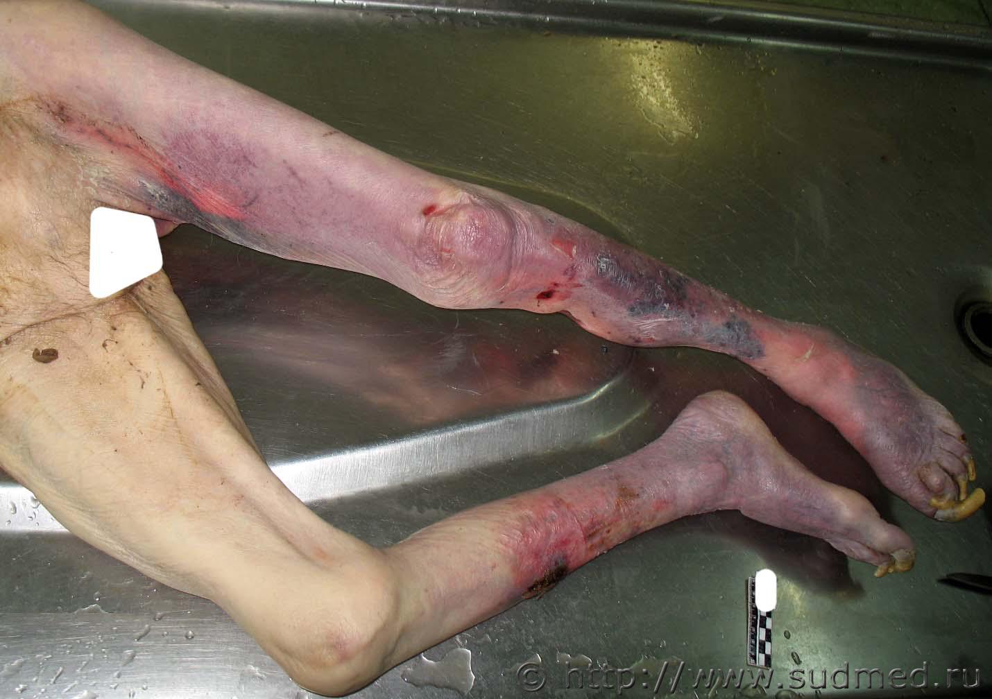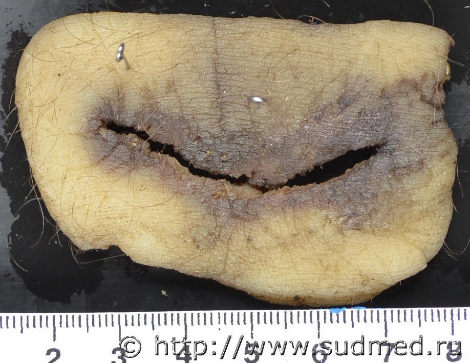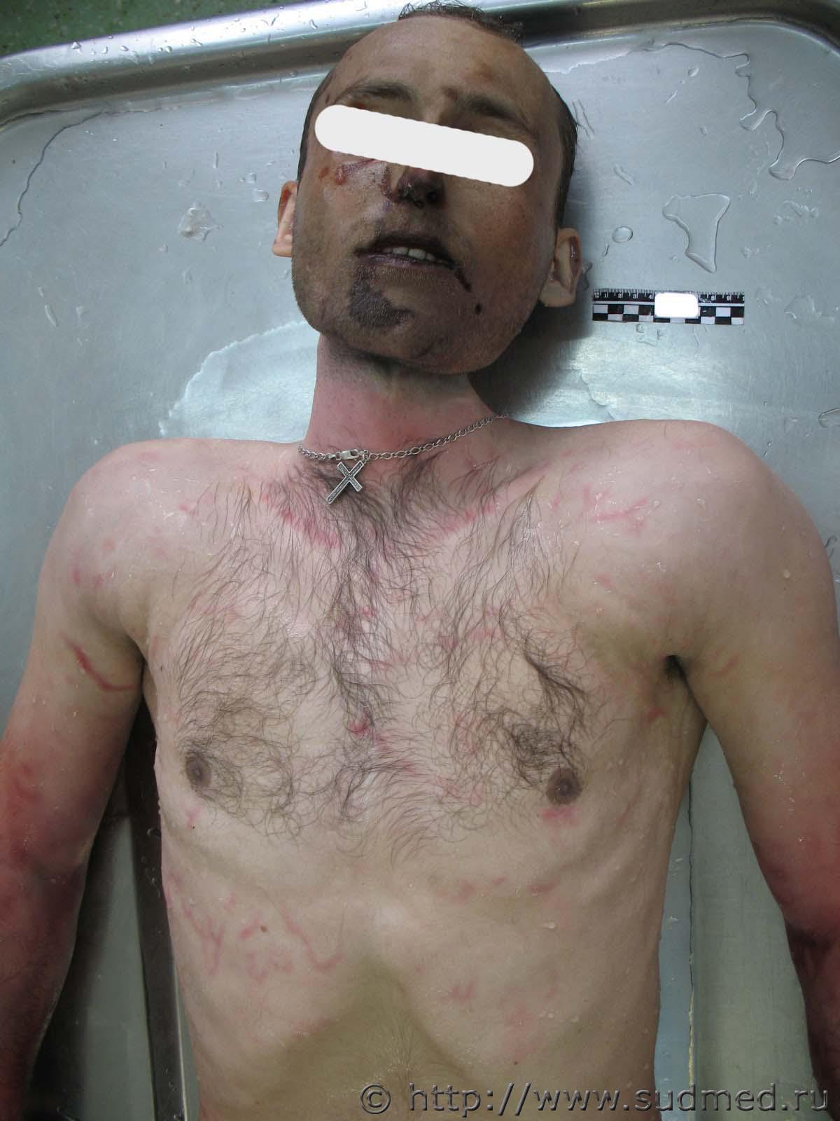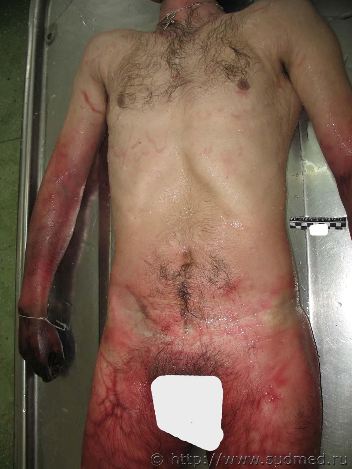 Признаки висения тела - концентрические трупные пятна на верхних конечностях, нижней части туловища и нижних конечностях Эскизы прикрепленных изображений |