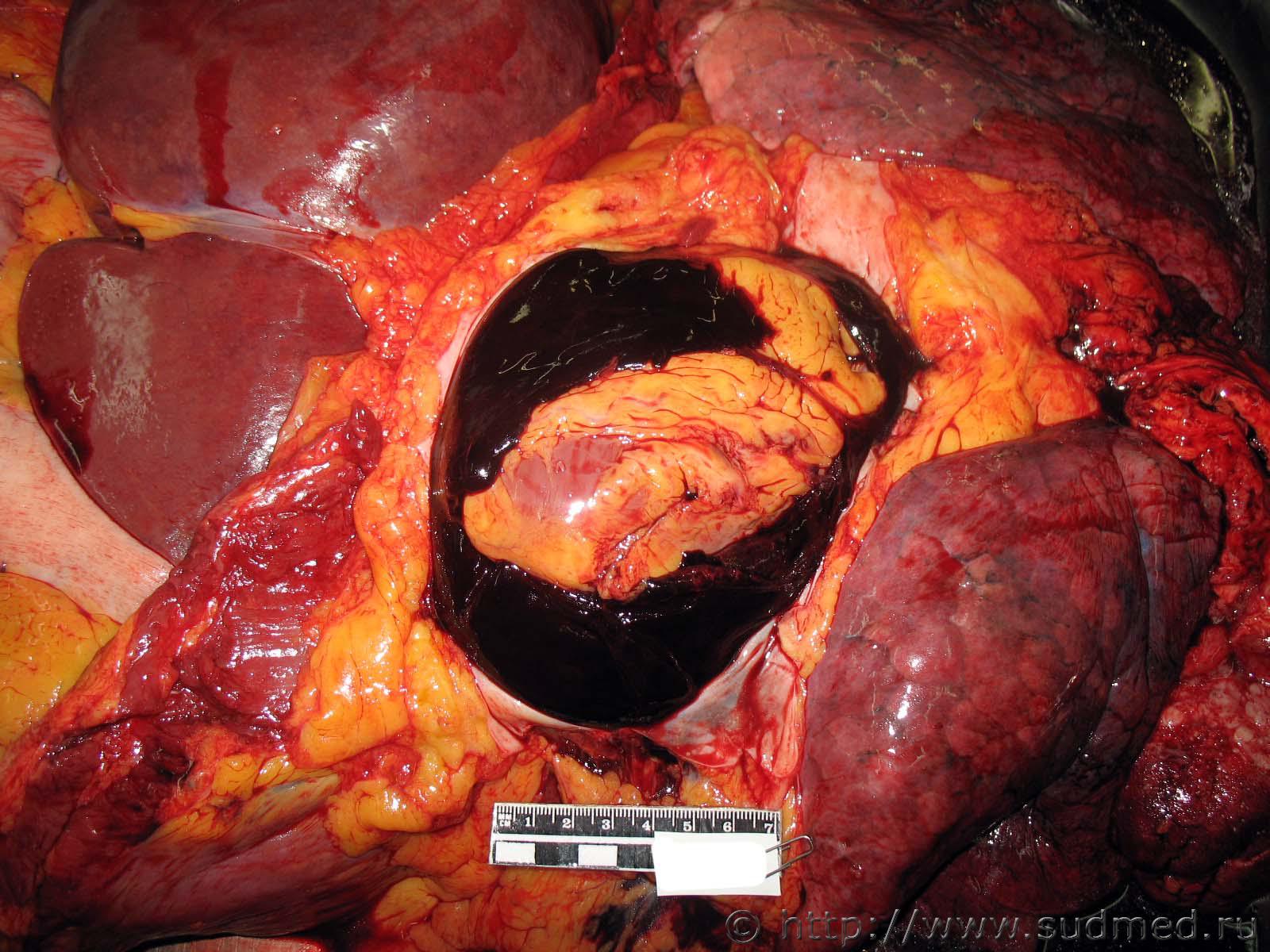 На трупе выявлено одиночное слепое проникающее осколочное ранение левой половины грудной клетки с повреждением сердца |